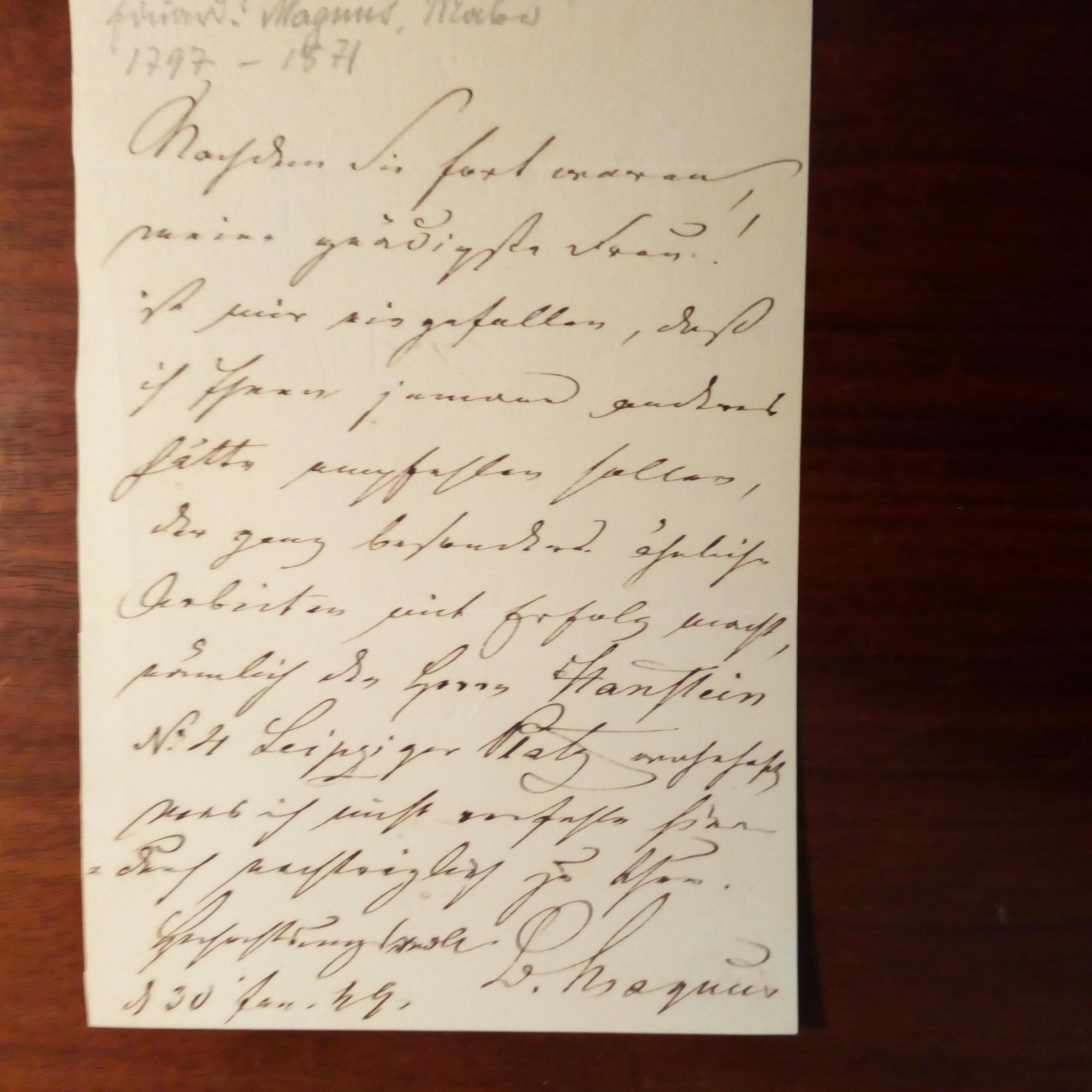 1799-1872, Maler, Prof. in Berlin - E. Brief mit U., 30.1.1849. ...Nachdem Sie fort waren, meine gnädige Frau! Ist mir eingefallen, daß ich Ihnen jemand anderes hätte empfehlen sollen...Herrn Hanstein...