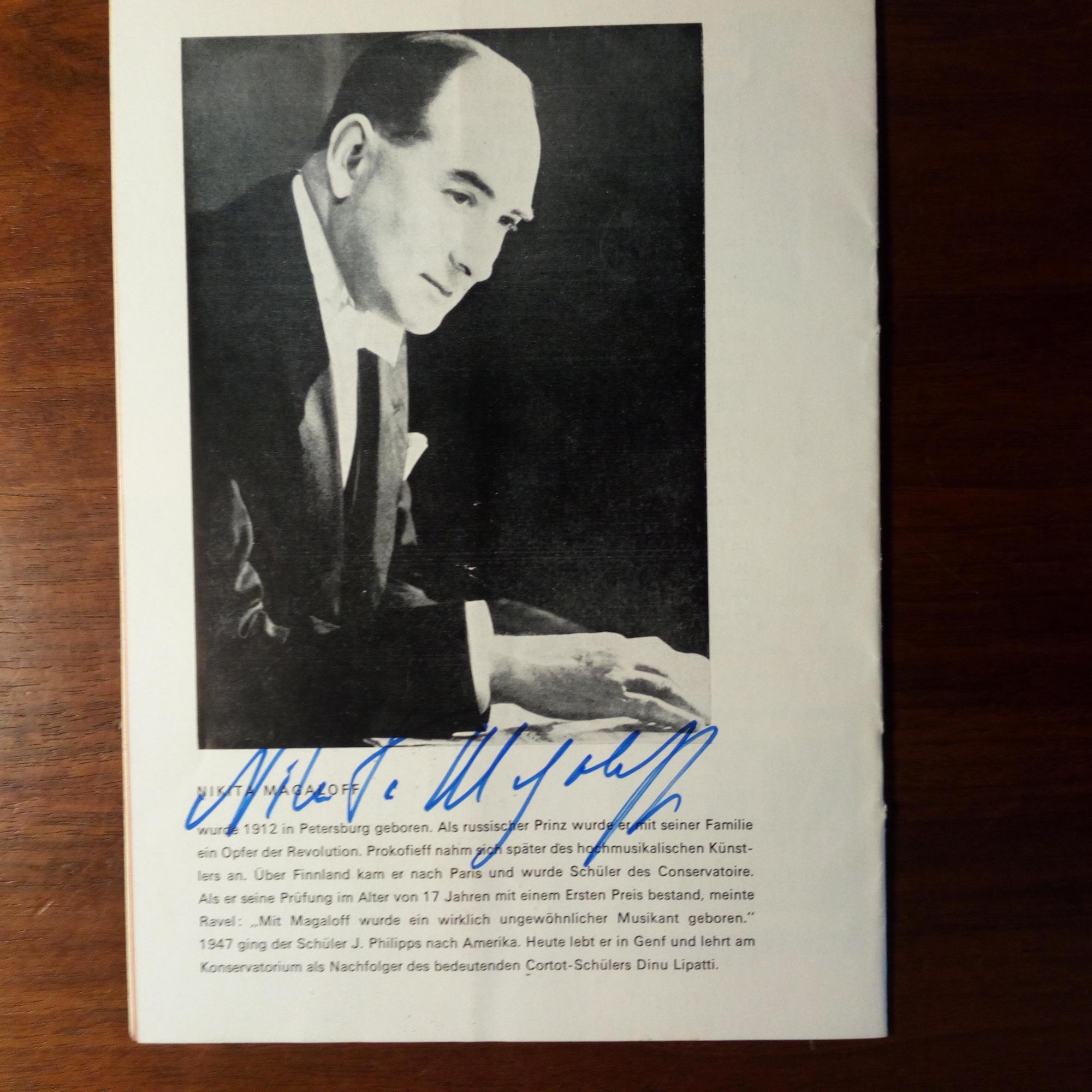 1912-92, russ. Pianist - Programmheft (3. Meisterkonzert in Münster 15.11.1967) mit U. unter Pfo. Beiliegt Karte mit U.
