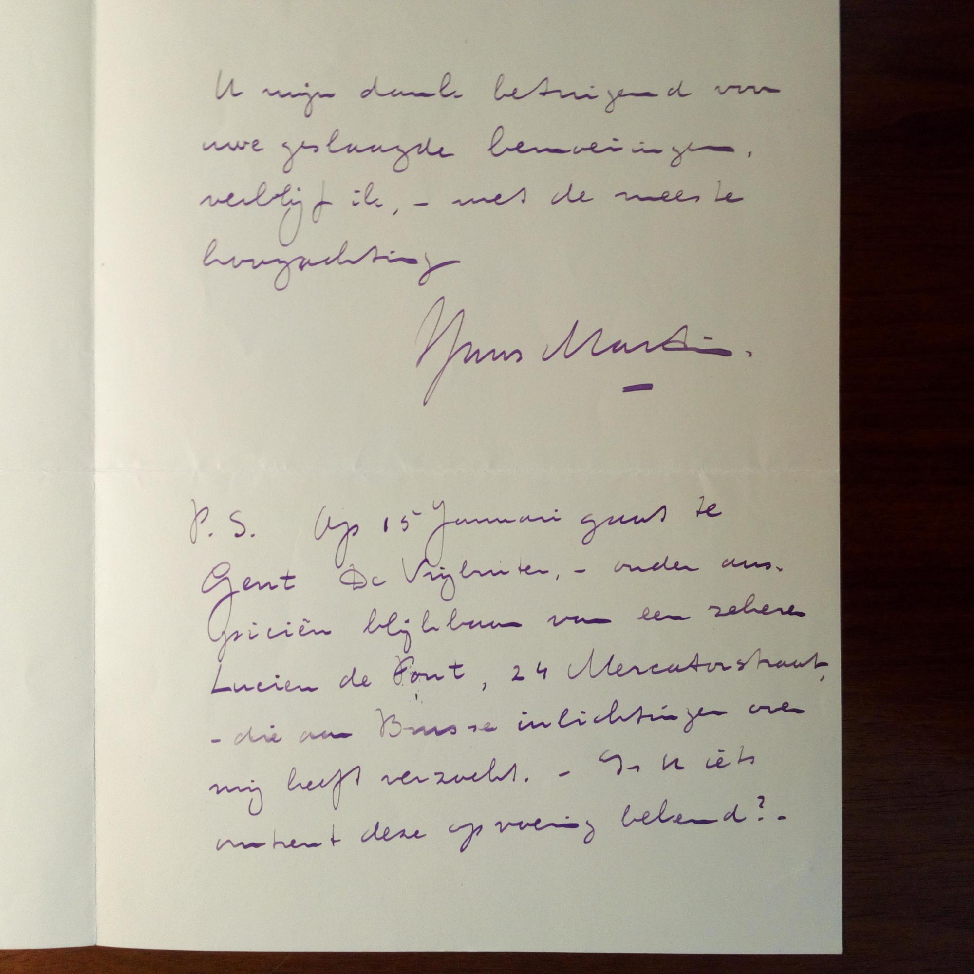 1886-1964, niederländ. Schriftsteller - E. Brief mit U., Den Haag 6.1.1929, 2 S. kl. 4°. An Keuls betr. Recherchen zu versch. Kollegen. Beiliegen mit ähnl. Inhalt: Brief (mit Br.kopf) mit U. (Vorname) des niederländ. Schriftstellers Eduard Veterman (1901-46), und e. Briefkarte (1 S.) mit U., 1930, von dem Schriftst. Ary den Hertog (1889-1958).