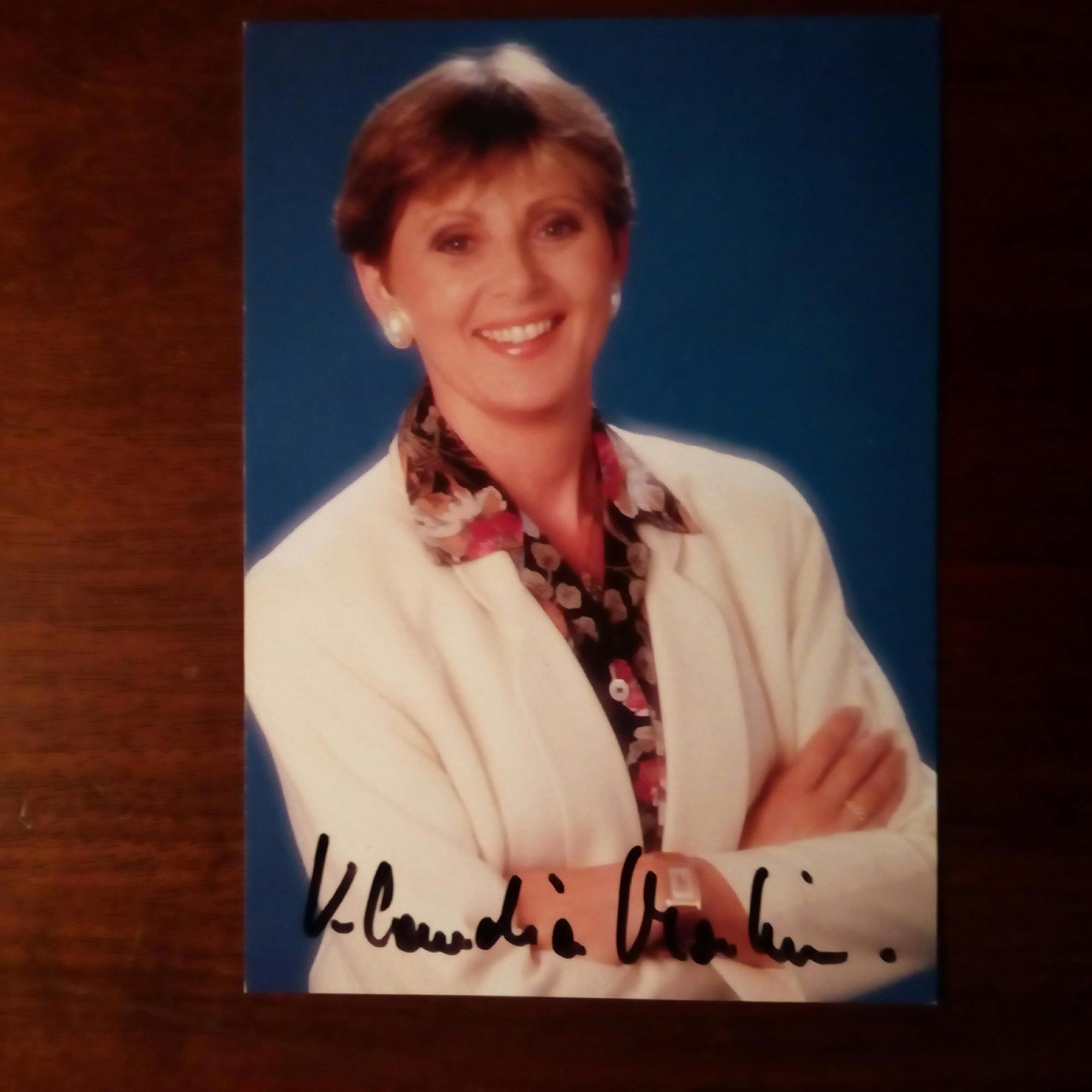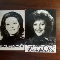 1931-2013, österr. Schauspielerin - Pfo. m. U. Beiliegt Pfo. aus jüngerer Zeit m. Widm. u. U.