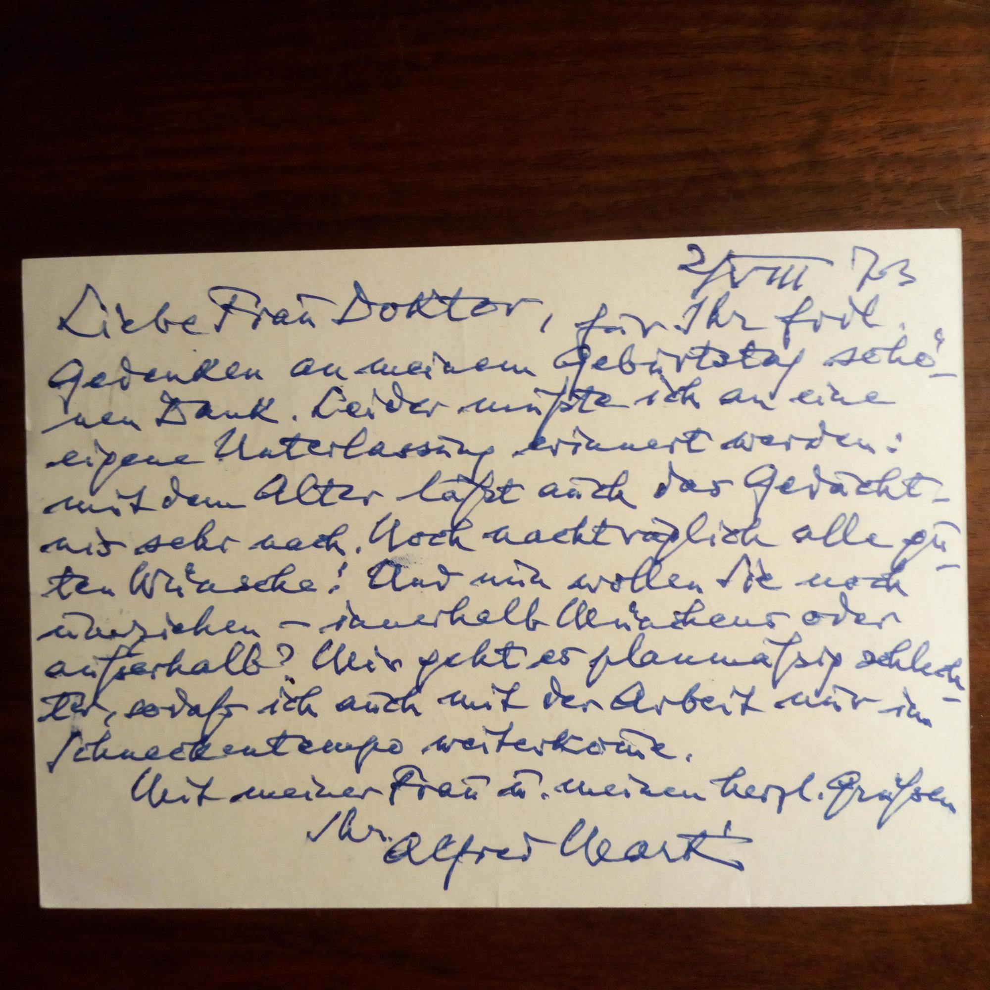 1882-1979, Historiker und Soziologe - 25 e. Br.karten u. 2 e. Br., je m. U., 1 Umschl., München 1960-77. Inhaltsreich an die Literaturhistorikerin und Schulrätin Erna Buschmann in München: Allg. Themen, über seine Arbeiten und seinen Sohn Georg.