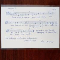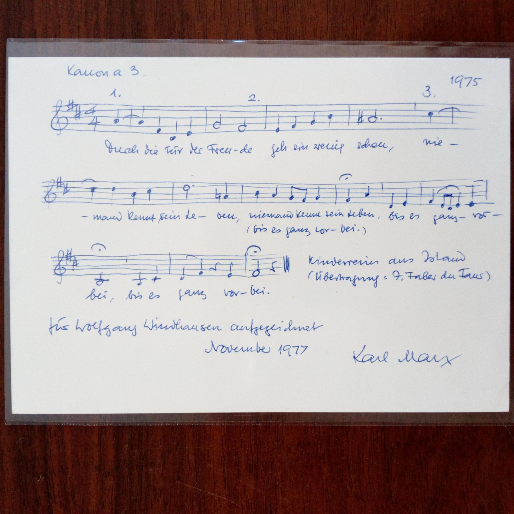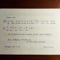 1906-84, Komponist, Organisator der "musikalischen Jugendbewegung" - Karte mit 3 e. Notenzeilen ("Kanon a 3 ... Kinderreim aus Island...") mit e. Text, mit Widm., U. u. D. November 1977.