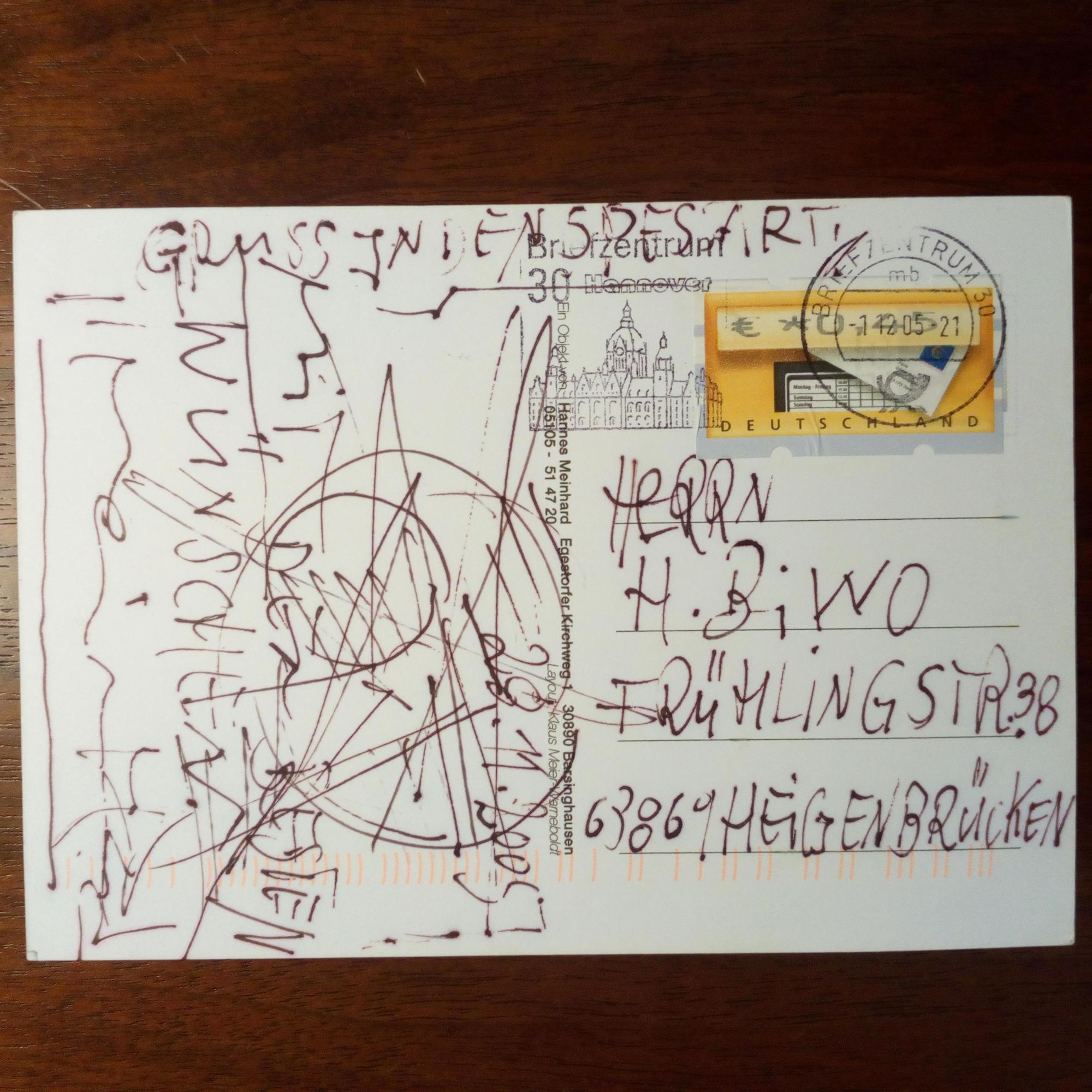 1937-2016, Bildhauer und Zeichner - Werk-Ansichtskarte als e. postal. Karte mit e. Skizze und U., 1.12.2005.