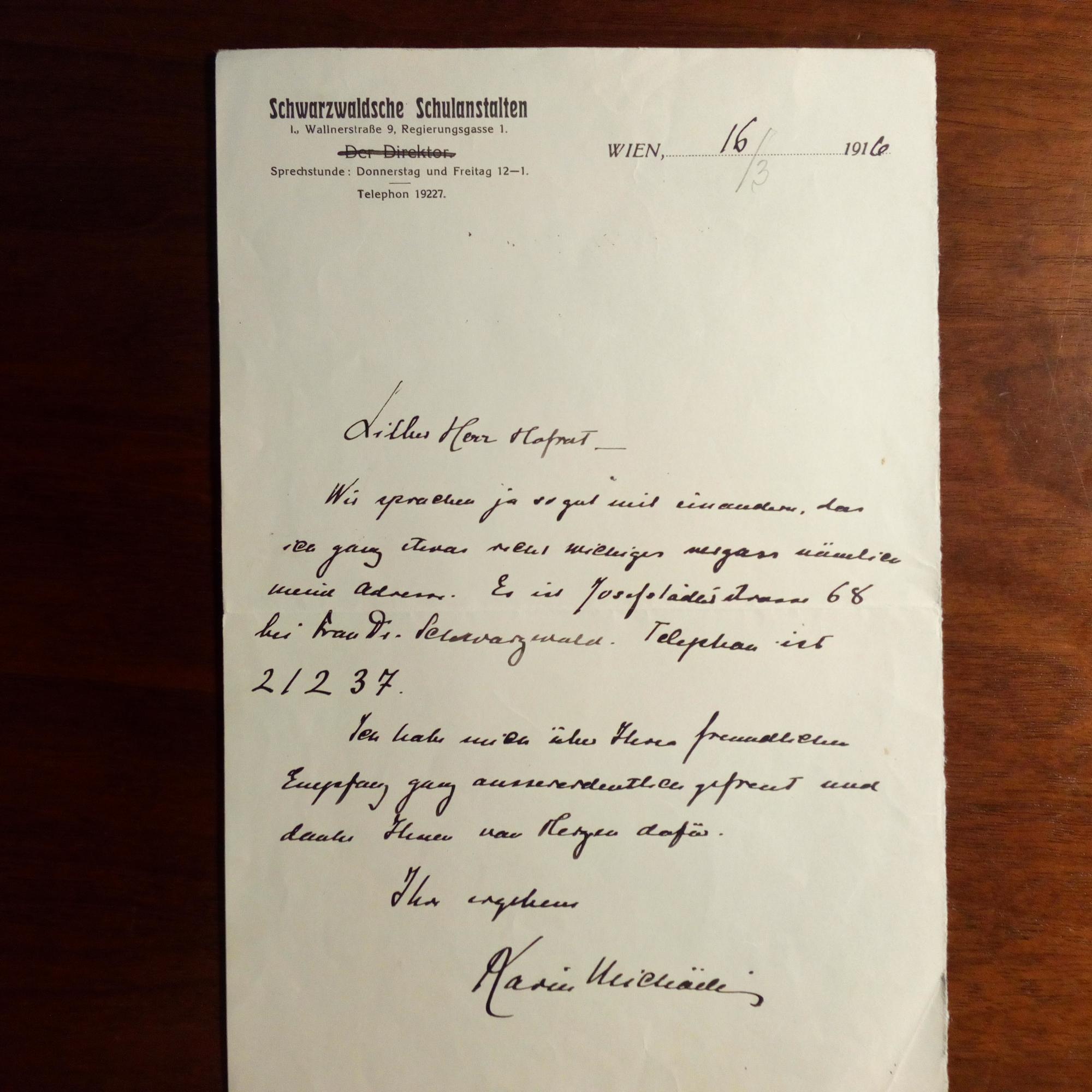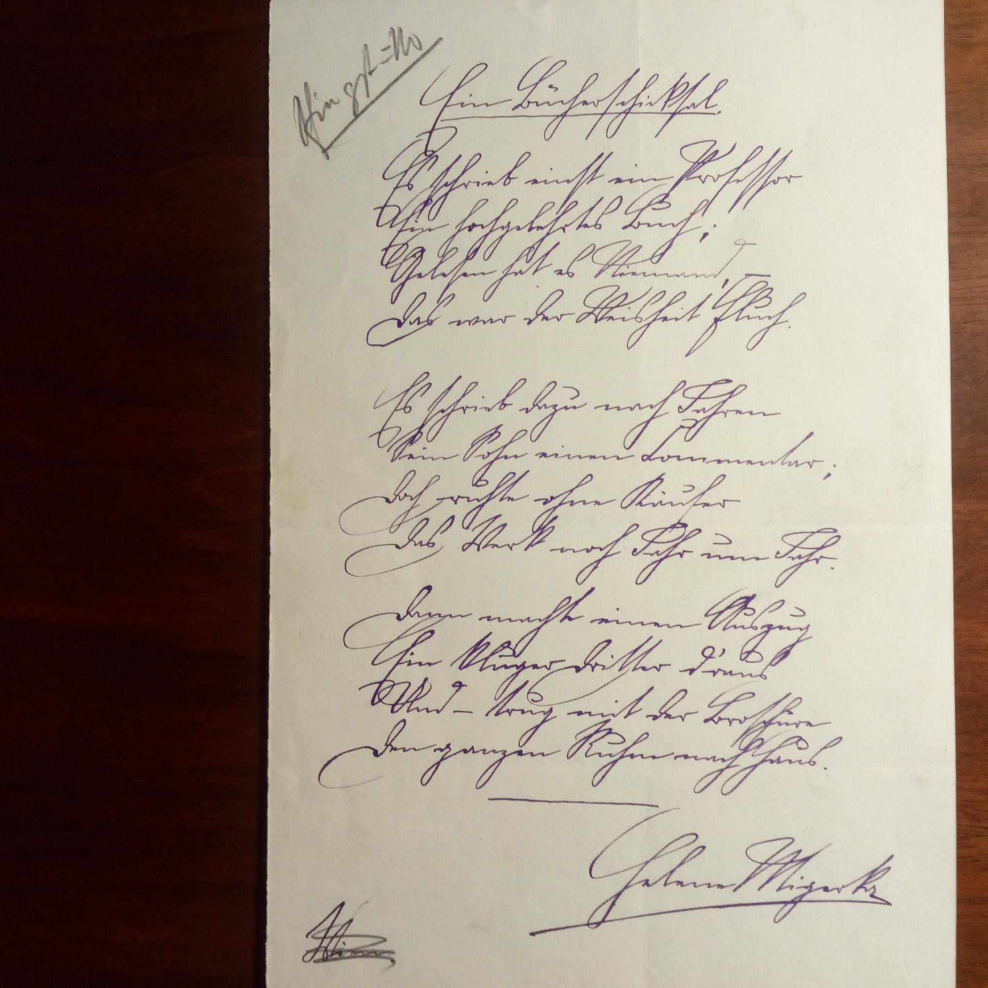 1867-1928, österr. Dichterin und Feministin - E. Brief mit U., Wien 24.3.1911, 3 ½ S. 8°. Gratuliert ausführl. zur Wahl zum Präs. des "Reichsverbandes" und will ihn unbedingt besuchen. Beiliegt weiterer, 12.4.1911. An einen Redakteur betr. eines bevorstehenden Kongresses in Berlin. Erw. auch den Adressaten des vorigen Briefes. Beiliegen: e. Manuskript ihres Singspiels "Das Drama des Lebens in 8 Gesängen von Mira Mara von X. Frauendichterin" mit ausführl. Ausführung dazu, zus. 4 S. folio, 3 e. Gedichte, je mit U., auf 3 ½ S. gr. 8° (von einem liegt kl. Zeitungsabschnitt mit Druck davon bei), e. Einladungskarte mit e. postal. Umschlag an den Schriftsteller und Lokalhistoriker Paul Tausig (1881-1923) zum Tee im Schriftstellerinnen-Verein (zus. 7 Autogr.). Dazu e. Briefkarte (2 S.) mit U., mit e. postal. Umschlag (20.2.1914) an dens. betr. eines Artikels von ihr, von ihrer Schwester, der feminist. Publizistin Else Migerka.