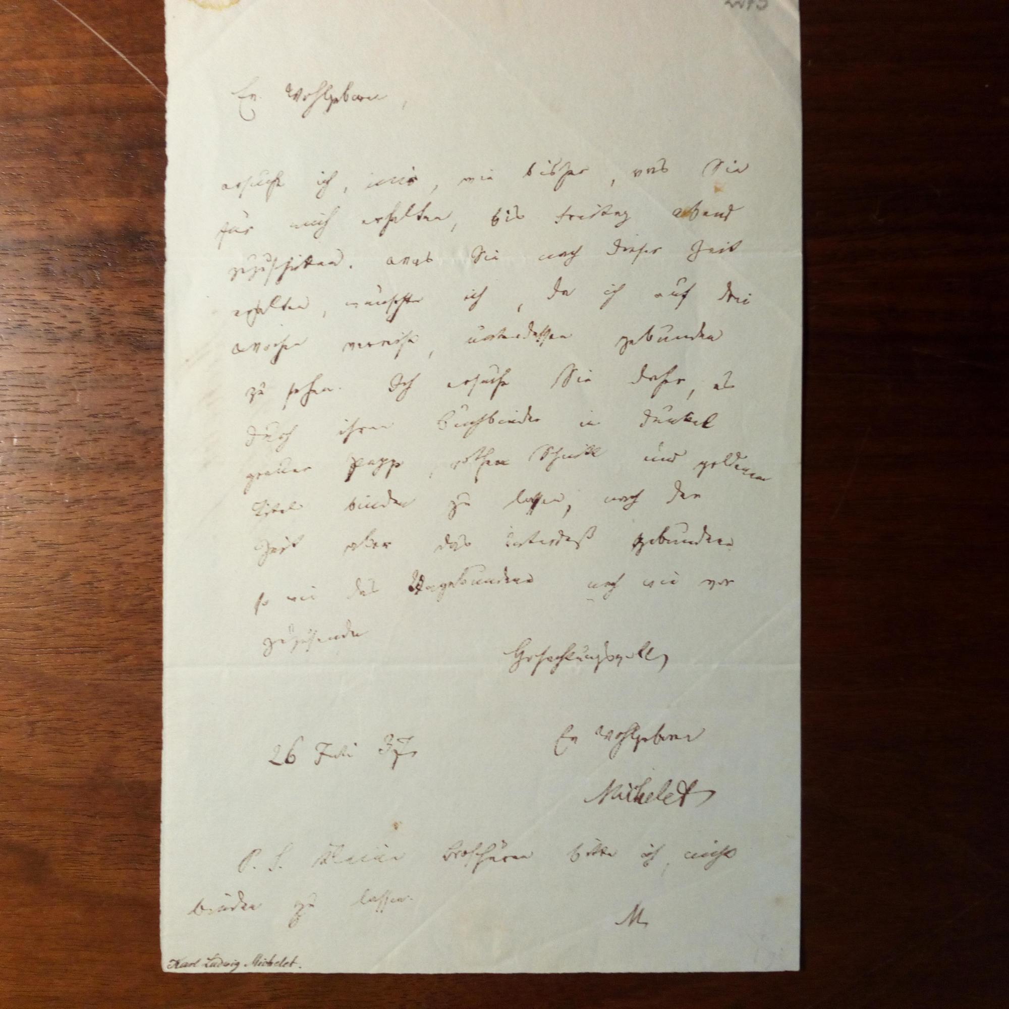 1801-93, Philosoph, Hegel-Forscher - E. Brief mit U., 26.7.1837, 1 S. 8°, Siegelrest. Betr. Veröffentlichungen.