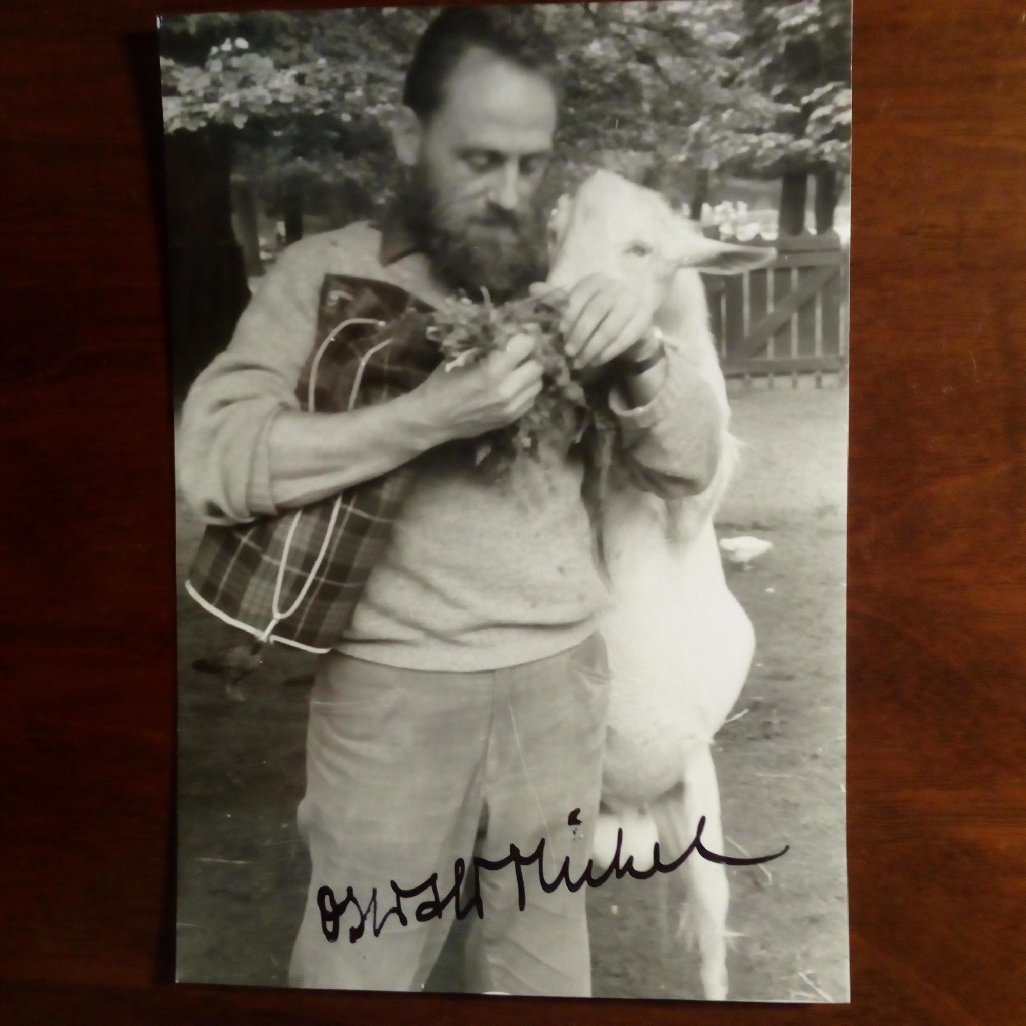 1924-84, Maler und Graphiker - Privates Pfo. (mit Ziege) m. U. Auf Rückseite Widm. für Wolfgang Zienow m. U.