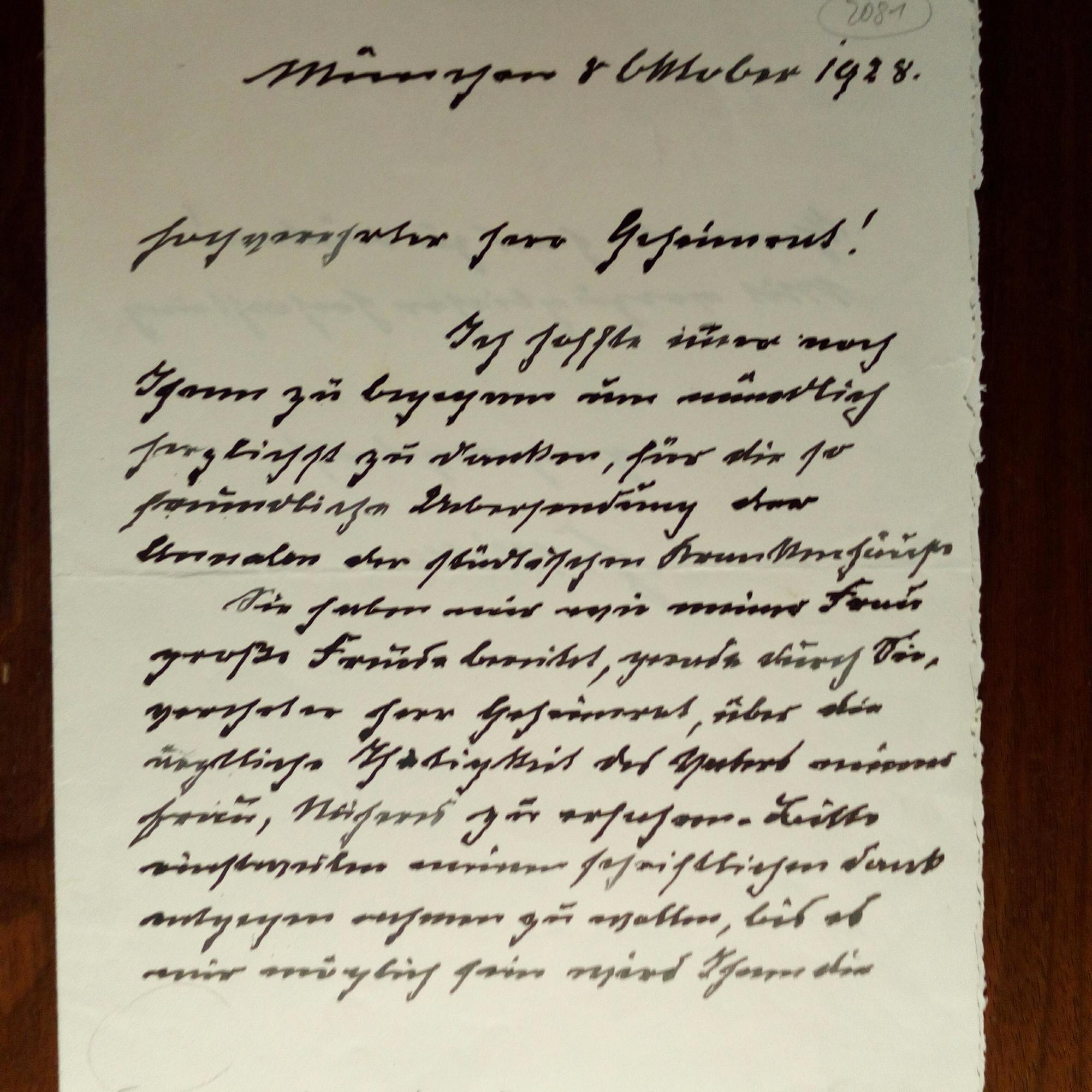 1842-1929, Bildhauer - Schöner e. Brief mit U., München 8.10.1928, 1 ½ S. kl. 4°, etw. zittrige Schrift. Dankt für ein Kunst-Jahrbuch und die darin enthaltene Würdigung "des Vaters meiner Frau" (dem Landshuter Regierungskanzler Friedrich von Pösl).
