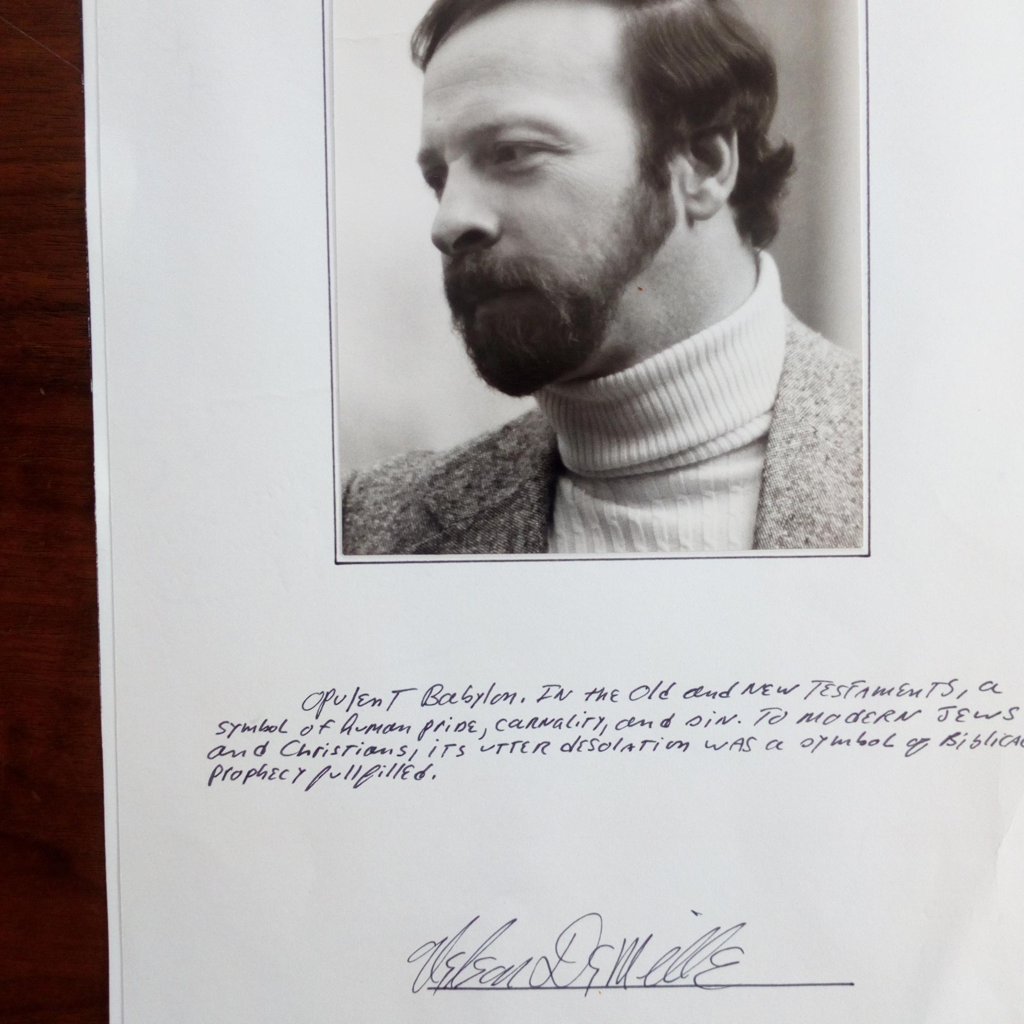 1943-2024, US-Schriftsteller - E. Zeilen (Zitat zu dem soeben erschienenen Buch "By The Rivers Of Babylon") und U. unter auf 4° mont. Pfo. Mit e. Begleitbrief mit U., März 1979, 2 S. 8°.