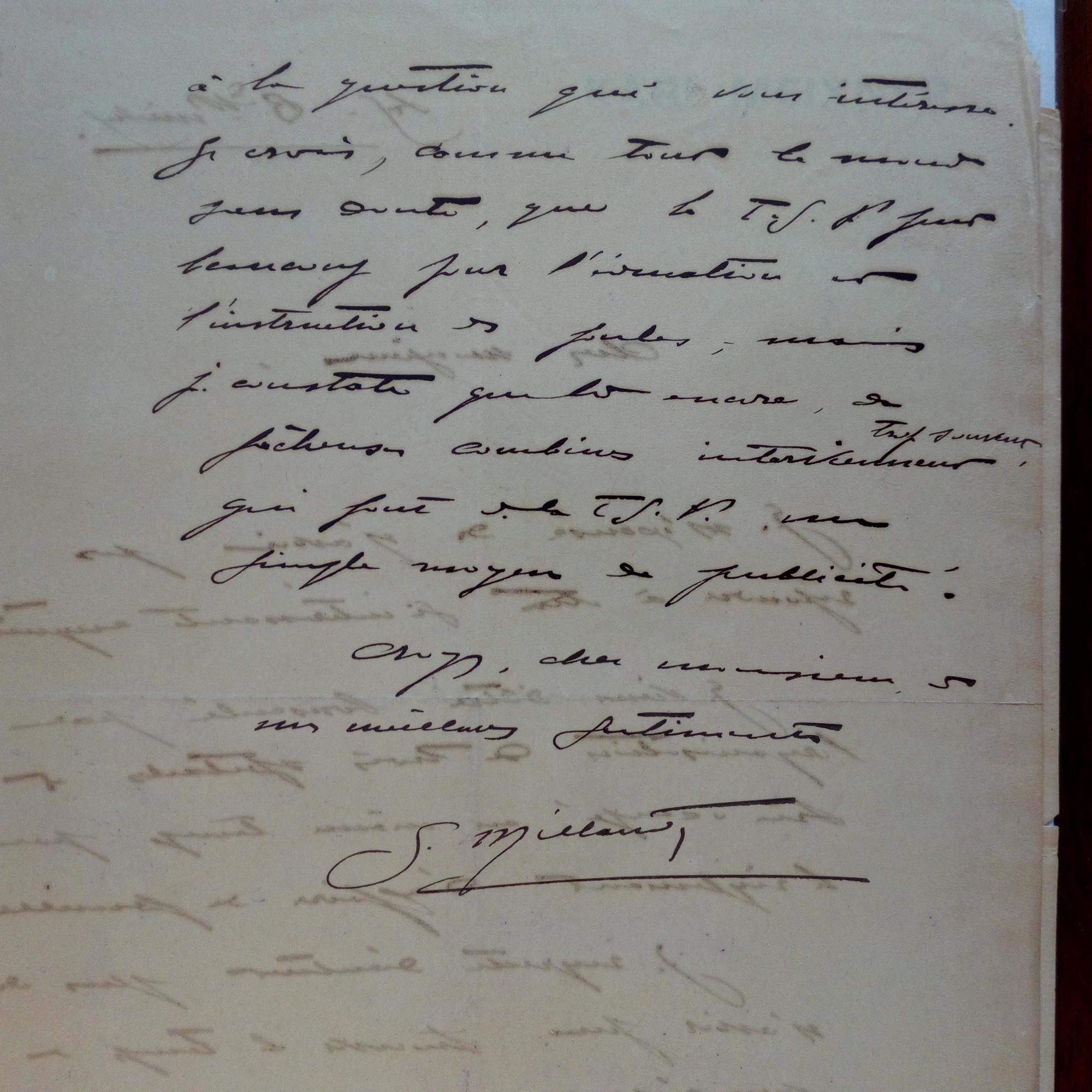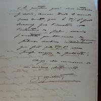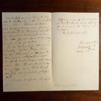 1870-1964, frz. Schriftsteller und Chansonnier - 2 e. Briefe mit U., 2 ½ S. 4°, kl. Altersspuren. An eine Redaktion betr. eines seiner Artikel und ausführlicher Hinweis auf die von ihm librettierte Operette "La jolie Sabalaise" des "charmant compositeur H. Panella", welche z.Zt. in der "Gaitée Lyrique" gegeben werde.