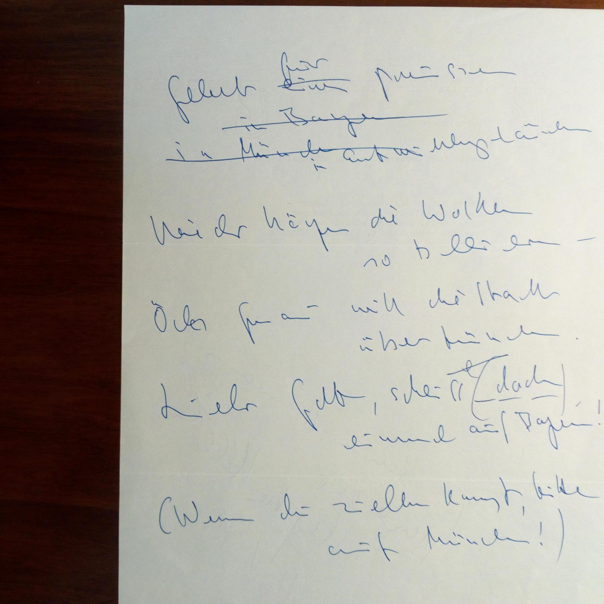 1927-96, Schriftsteller - Br. m. U., (München) 7.4.1988, ¾ S. 4°, Br.kopf. An einen Sammler, der nach Arbeitsmanu-skripten gefragt hatte: ...nicht für die Augen Dritter bestimmt. Solche Notizen werden unmittelbar nach Ende der Arbeit vernichtet...