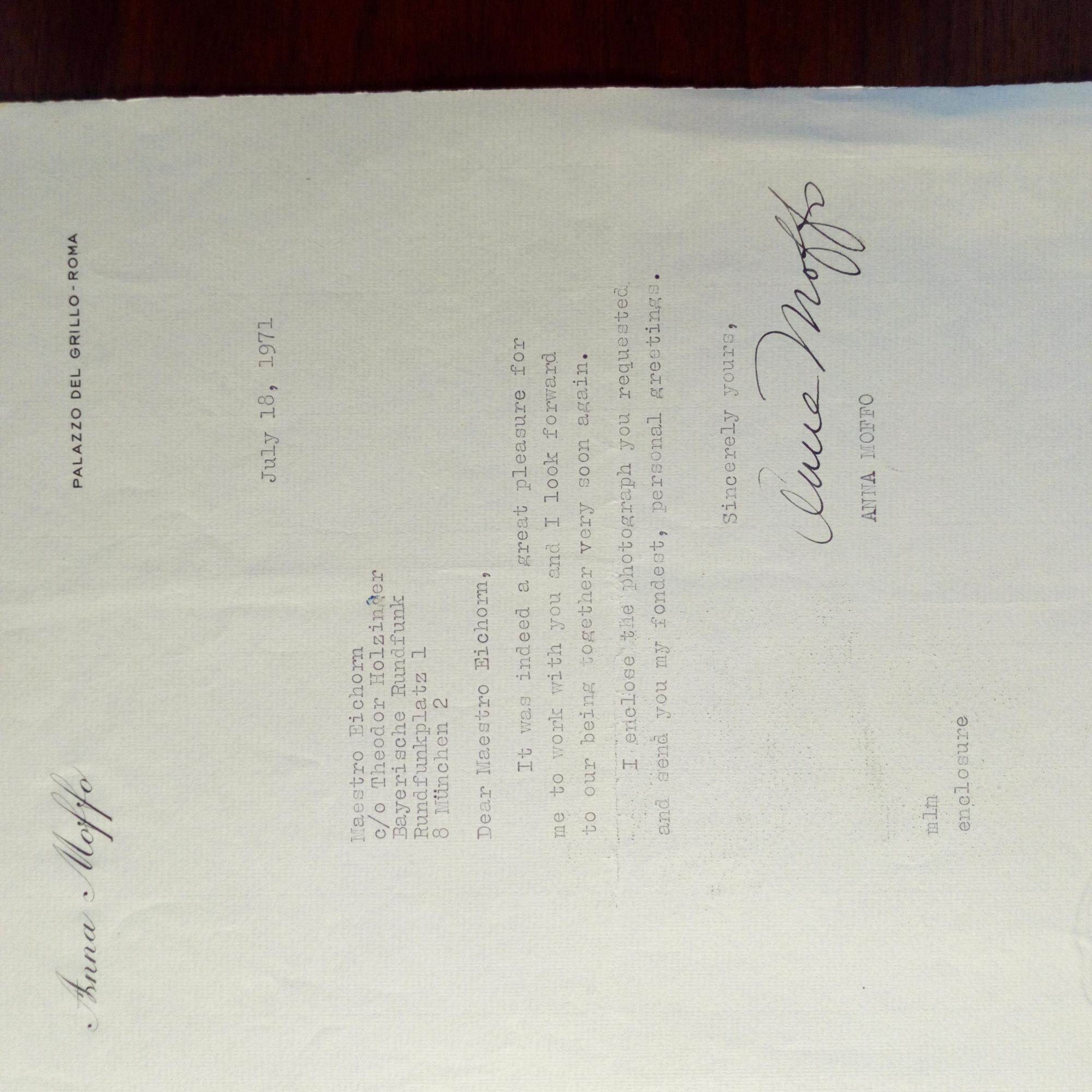1932-2006, US-Sängerin (Sopran) - Brief mit U., (Rom 18.7.1971), ¾ S. 4°, Br.kopf. An Dirigent Kurt Eichhorn (1908-94), München: ...was indeed a great pleasure for me to work with you... Sendet Foto.