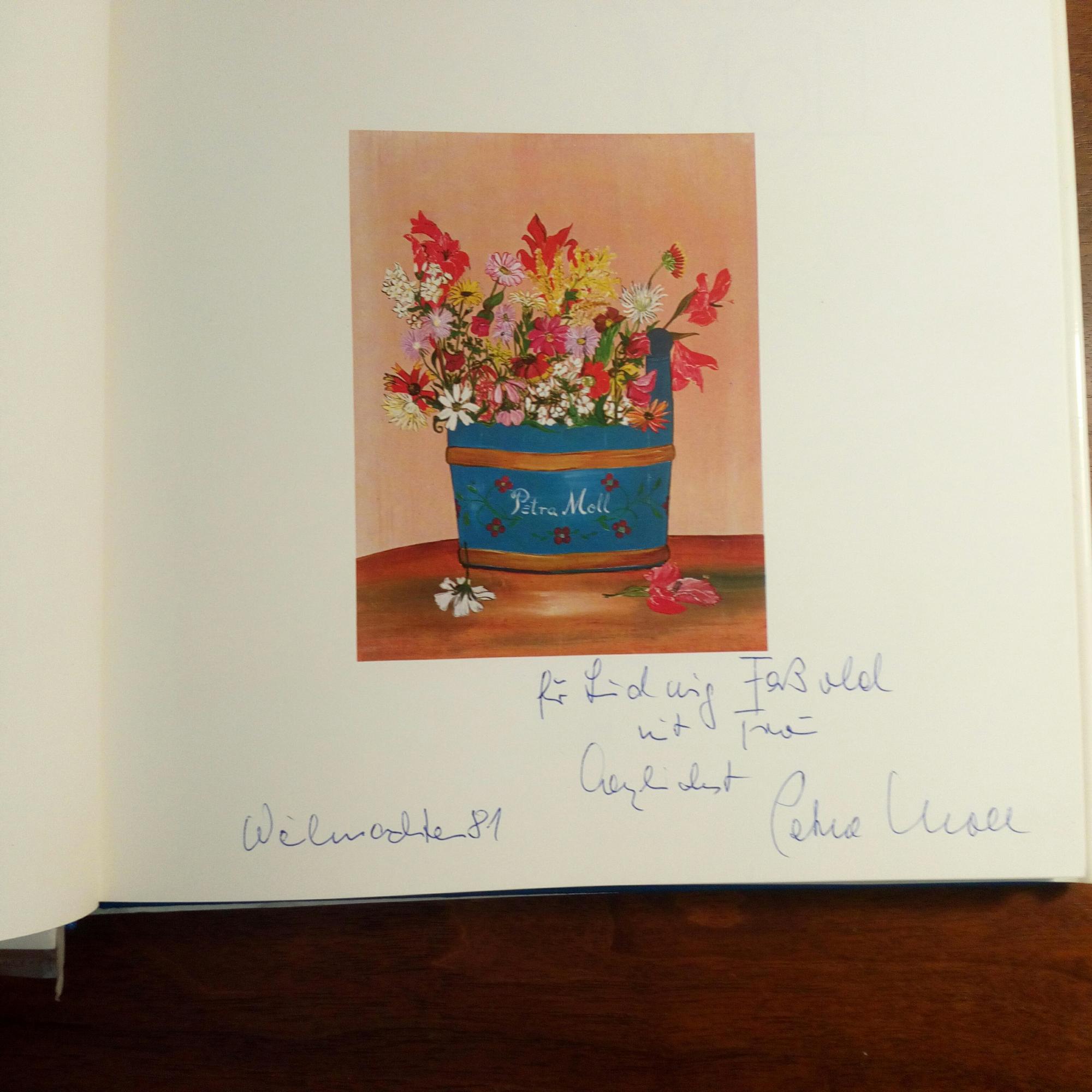 1921-89, 1921-89, Malerin (Naive Kunst) - E. Brief mit U. und D. (München) 4.2.1977, 2 S., in einer 8°-Faltkarte (vorne ihr Gemälde einer Kirche im Winter). An den Mitarbeiter des Bertelsmann-Verlages Manfred Henning betr. des "Großen P.M.-Buches" (ersch. 1981): ...mit Herrn Scharnagl wegen des Texts gesprochen und er hat mir abgeraten als 4. Schloß Hohenschwangau zu wählen das in der Geschichte Ludwigs II. eine zu geringe Rolle spielte...versuche bereits alle Loire-Bilder ausfindig zu machen... Dazu Brief mit e. Mitt. und U. an dens., 21.1.1978, ¾ S. 4°. Betr. einer Besprechung in ihrem Atelier: ...Ein Herr von Rosenthal will auch kommen... Und Widm. mit U., 1981, auf Vortitel des gen. Buches, Hrsg. Wilfried Scharnagl (1938-2018).