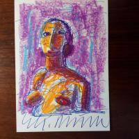1926-2019, Maler, Grafiker und Bildhauer - Karte mit e. Zeichnung (Frauenbüste, Mischtechnik,) und U., als e. postal. Postkarte (Leipzig 3.3.2005). Beiliegen: Kunst.Ansichtskarte (sein Gemälde "Ubu-Bild-Null-vier". Auf Rückseite U., O. und D. Leipzig 9.3.2006, und Einladung zu einer Ausstellungseröffnung in Leipzig am 23.9.2006.