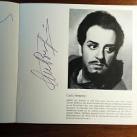 1924-2014, italien. Tenor - Programmheft des BR vom 11.1.1970 (Münchner Sonntagskonzerte). Darin U. bei großem Pfo. Ebenso v. d. Sängern Raina Kabaivanska und Piero Cappuccilli. Beiliegt e.Br. m.U. seiner Gattin Adeta d'Aimi, 1 S.4°, Bleistift betr. eones Autogramm-Fotos von sich