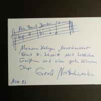 1928-2015, Komponist und Dirigent - Karte mit e. Notenz. (2 Takte s. Musicals "Mein Freund Bunbury", nach O. Wilde), Widm. und U. für Musikdirektor Ernst W. Schmidt, März 1983.