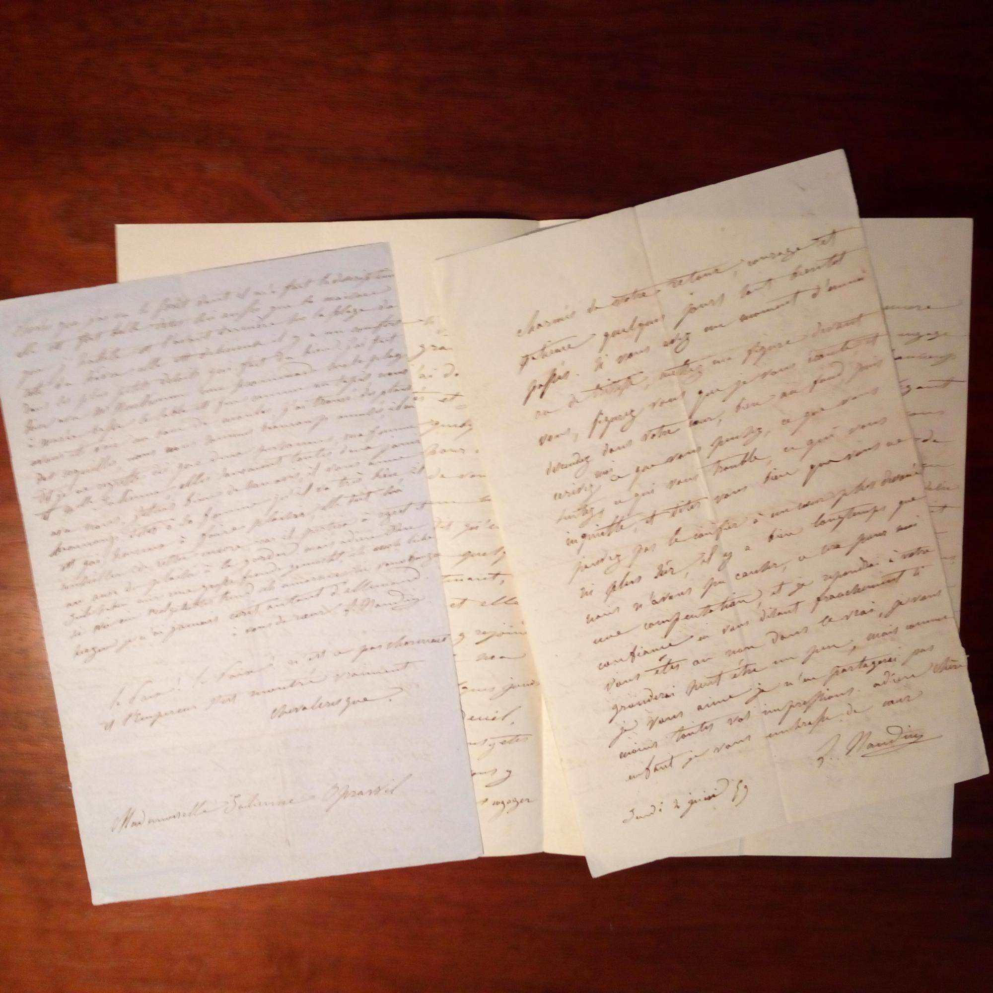 1876-1946, frz. Maler, Graphiker, Designer und Karikaturist - 2 e. Briefe mit U., Trouville Juli 1899, zus. 7 S. 8°, kl. und dicht geschr., einer mit gepr. Schrift "Villa Sidonia" am Kopf. Mit 1 e. Umschlag. An die von ihm verehrte Malerin Julienne Oprawil, spätere Flinsch (1839-89) in Paris: Teilt ihr viele biograph. Details über sich mit.