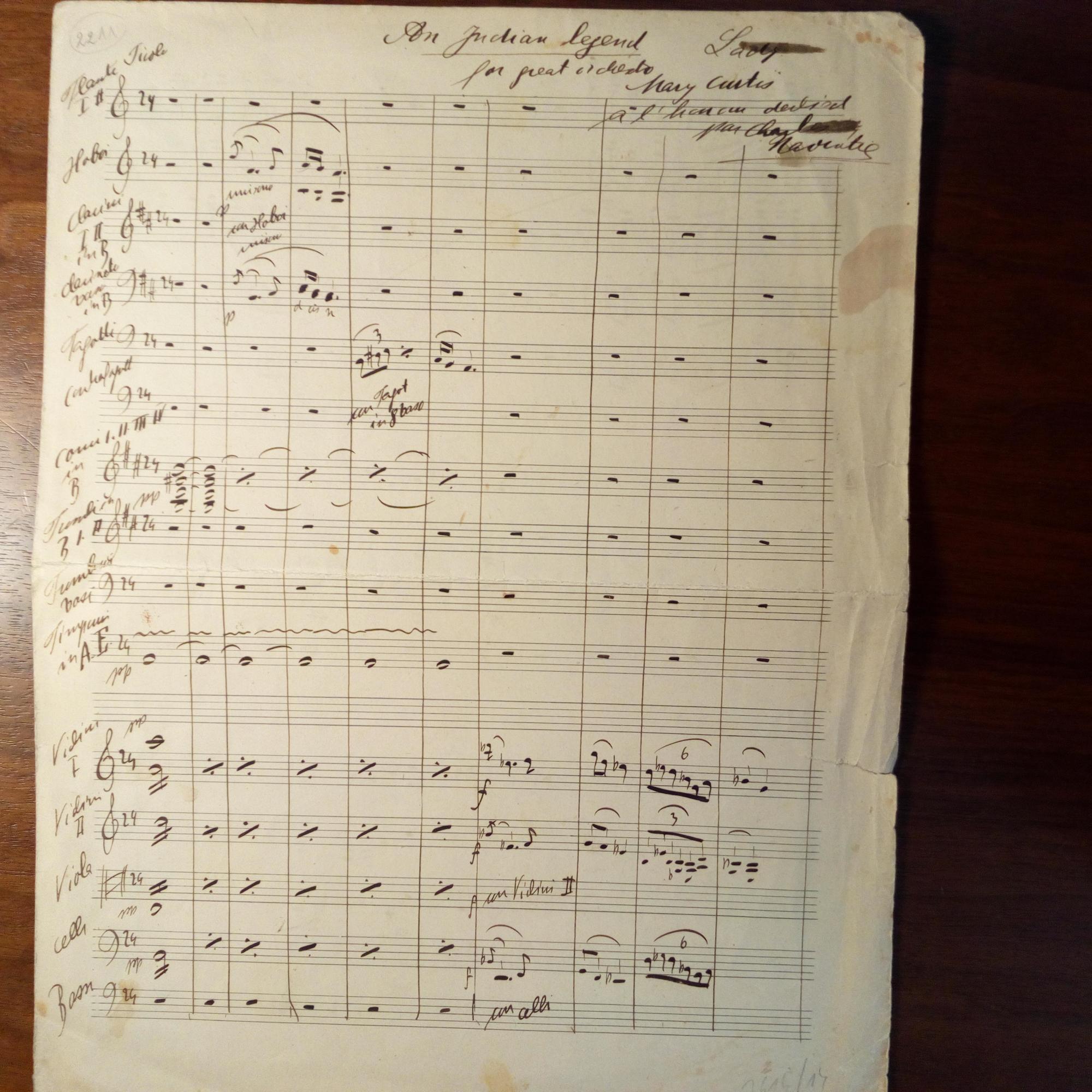 1867-1936, tschech.-österr. Komponist - E. Notenmanuskript (Partitur), 4 S. folio, am Kopf e. "An Indian Legend" und Widm. für die US-Musikmäzenin "Lady Mary Curtis" (1876-1970). Alterssp.