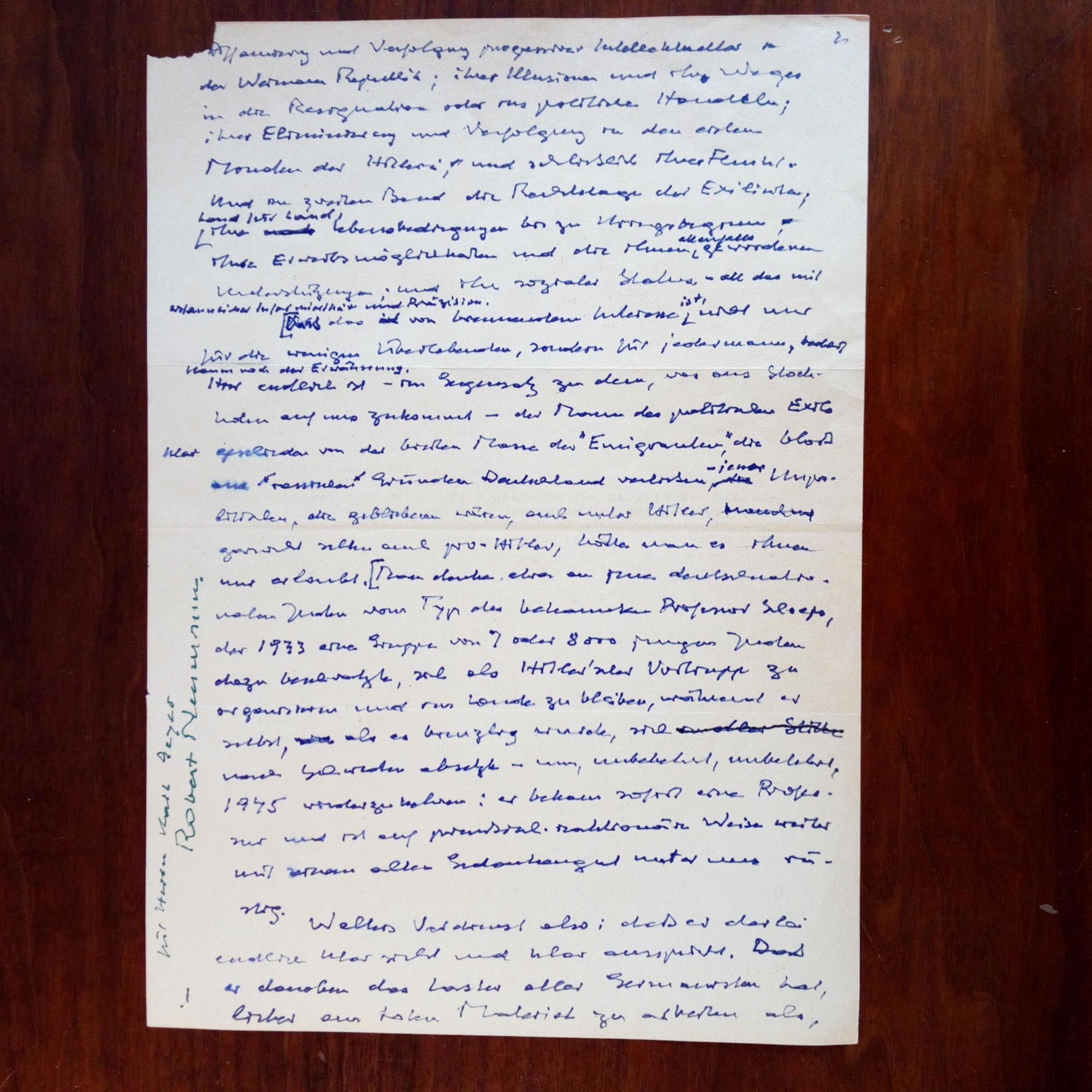 1897-1975, österr. Schriftsteller - 1. Briefkarte mit U., Locarno 22.6.1971, 1 S., dicht geschr. Dankt dem Schriftsteller Frank Arnau (1894-1976) in München für einen Artikel über den gemeinsamen Freund Friedrich Dürrenmatt (...wird tatsächlich...eine entscheidende Hilfe sein...). 2. 4°-Seite aus einem e. Manuskript (Rezension zu H.-A. Walter "Deutsche Exil-Literatur 1933-1950", ersch. 1972), nachträglich mit e. Grüßen und U. versehen. 3. Brief mit U., ¾ S. 4°, gel., Locarno 21.11.1973, an den Pressesprecher der "Demokratischen Aktion" (Initiative gg. Strauß und Dregger) in München, den Extremismus-Forscher Kurt Hirsch (1913-99): Teilt ihm die Adresse von Arnau mit (Bissone, Schweiz), möchte sich selbst aber nicht an dieser "innerbayrischen Angelegenheit" beteiligen: ...bin ein in der Schweiz lebender britischer Staatsbürger und als solcher allzu weit vom Schuß... 4. Kopie eines Briefes (Locarno 2.10.1968, 1 ½ S. 4°) an die Schriftstelle-rin Anne Lothringer (geb. Day-Helveg, 1898-1975), in dem er sich ausführl. für die Publikation von Briefen von ihr und ihrem Gatten entschuldigt. Mit e. Anmerkungen von ihr ("Es gibt Grenzen!!" u.ä.).