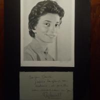 1939-2023, frz. Chansonnière - Kärtchen mit e. Zeilen "Bonjour Darità...peut-être nous verrons nous un Jour?" und U., leicht mont. unter Pfo. (kl. 4°). Mit Biografieblatt vom 24.3.1956.