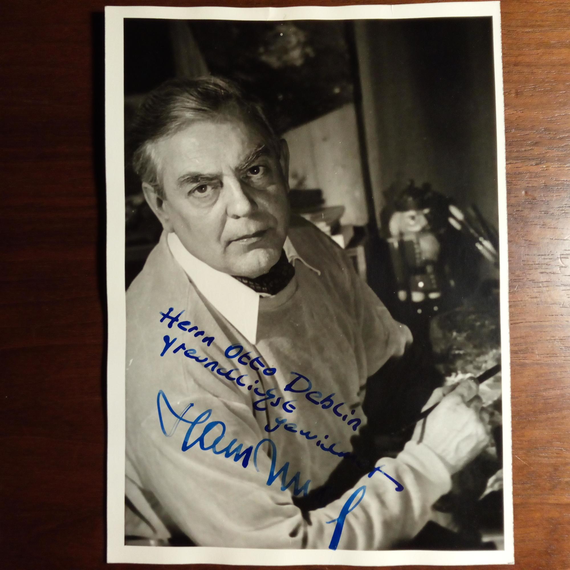 1922-96, Maler u. Bildhauer - Pfo. (ca. 8°, beim Malen) m. Widm. u. U. Begleitbr. m. Br.kopf u. U., Voigtholz/Peine 9.2.1970.