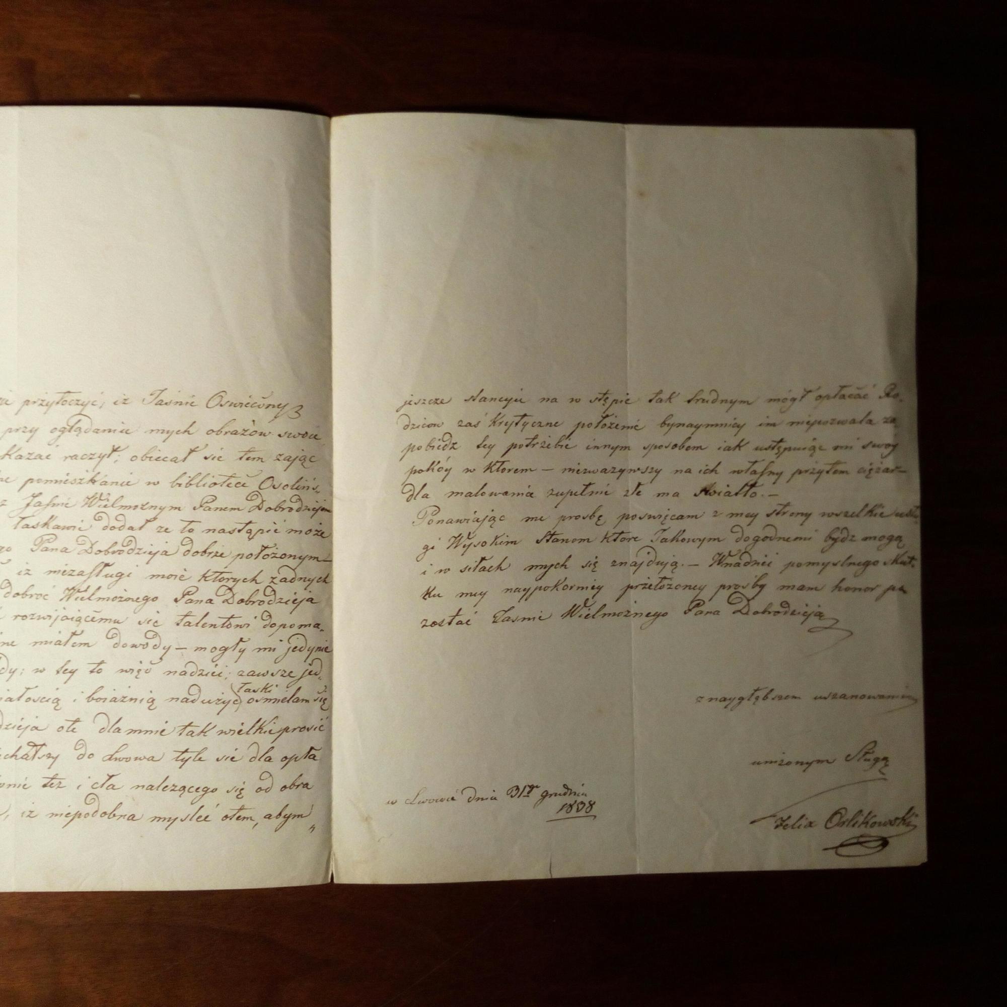 1806-40, poln. Maler - E. Brief mit U., Lwowiec (Masuren) 31.1.1838, 3 S. 4°, kl. Schrift. Poln. Mit alt. Sammlerblatt.