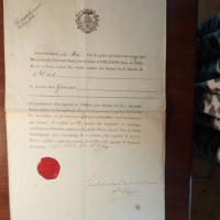 1777-1847, Schwester und Beraterin des frz. Königs Louis Philippe I. - Urkunde (ausgef. Vordruck) mit U., Palais Royal, Paris 11.5.1827, 1 S. gr. folio, Gegenzeichnung des Sekretärs André Pieyre, gut erh. Lacksiegel. Monsieur Diot und seinem Graveur wird erlaubt "d'en apposer le Tableau aux Armes de son Altesse Sérénissime, audevant de sa maison, et d'en prendre la qualité dans toutes les Assemblées...".