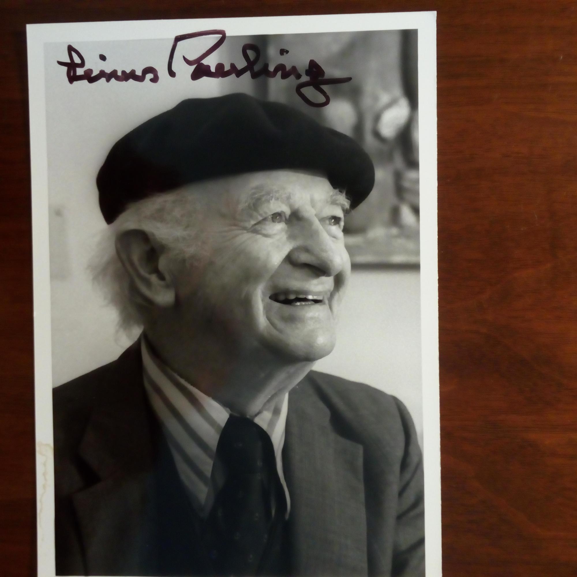1901-94, dt.-amerikan.-Chemiker - Pfo. mit U. Dazu Kurzfassung seines Vortrages "Vitamin C und Krebs" auf der 31. Tagung der Nobelpreisträger in Lindau, 1981 (Kopie) mit U. am Kopf.