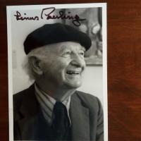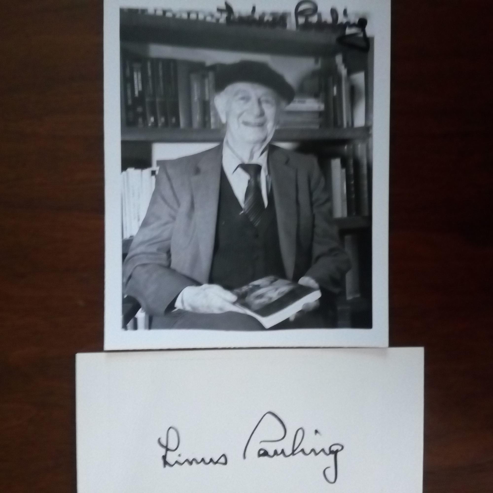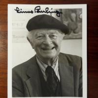 1901-94, US-Chemiker und Pazifist - Brief mit U. auf augeschn. Fragment (ca. 8°) eines Umschlages, mit Abs. (Pasadena, Calif.). An den schweizer Soziologen und Monografen Walter Hollstein (geb. 1939): ...thank you for the kind message (e. ergänzt "u. die Nummer des D. VolksL.") about the award of the Nobel Peace Prize for 1962 to me. I feel that it is an award to all the people who have been working to bring a stop to nuclear tests... Beiliegt ein späteres Hochglanz-Pfo. (ca. 8°) mit U.