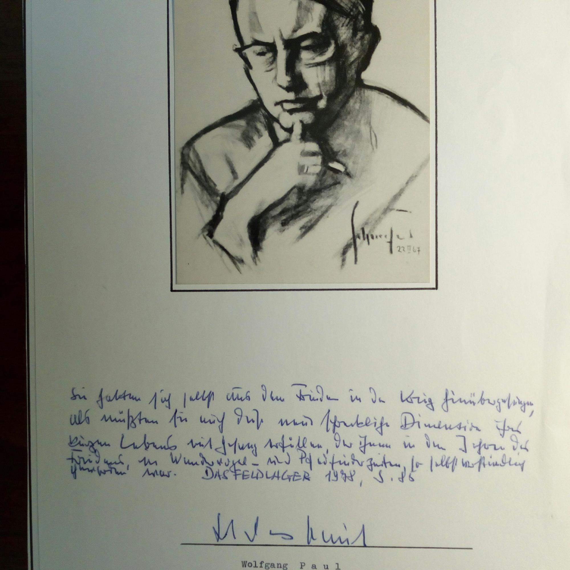1913-93, Journalist und histor. Schriftsteller - E. Zitat (4 Z., aus seinem Roman "Das Feldlager" 1978) und U. unter Pfo. (nach einer Zeichnung). Dazu e. Begleitbrief mit U., Berlin 22.2.1979, 1 S. 4°, Briefkopf. Beiliegen: E. Manuskript, U. am Kopf, 1 ½ S. 4°. Anfang des 1. Kap. von "Der Endkampf um Deutschland 1945", und: 4°-Blatt mit e. Zitat (5 Z. aus "Dresden- Gegenwart und Erinnerung" 1986), U., Berlin 9.10.1981.