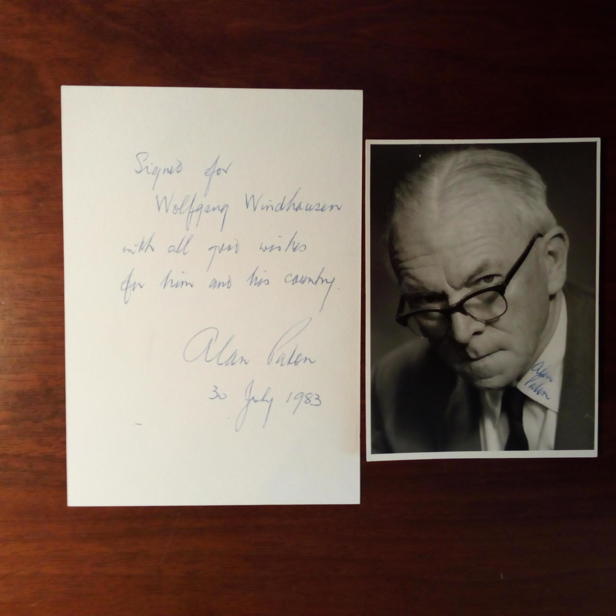 1903-88, südafrikan. Schriftsteller - kl. Pfo. mit U., ger. Klammerspur. Mit kl. e. Begleitschreiben mit U. und D. 30.7.1983.