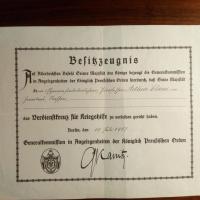 "Verdienskreuz für Kriegshilfe" für Prof. A. Claus in Zwickau, Berlin 19.7.1917, 1 S. 4°quer, Faksimile-U. des preuß. Hofmar-schalls und Ordenskanzlers Georg von Kanitz (1842-1922).