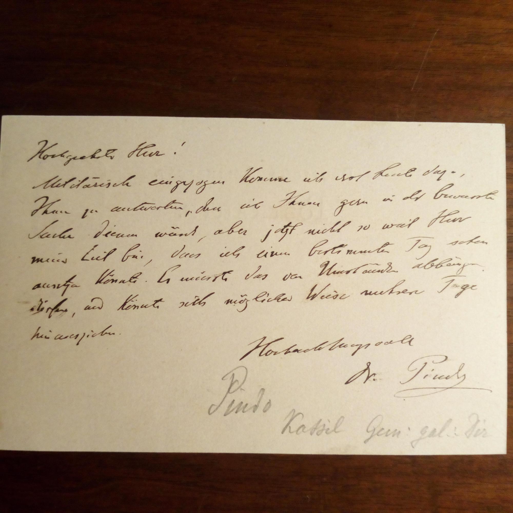 1836-90, Kunsthistoriker, Museumsleiter - E. postal. Postkarte m. U., (Kassel 2.7.1880). An den Maler Alexander Rudolf Grünewald in Waldau b. Kassel betr. eines Treffens: ...Militärisch eingezogen komme ich erst heute dazu ... könnte sich ... mehrere Tage hinziehen...