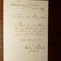 1826-87, österr. Maler - E. Mitt. mit U., ca. 2 S. kl. 8° quer, kl. Schrift, überschrieben "Nachtrag". Zu christlichen Themen in seinen Bildern. Dazu kl. mont. Porträt (nach Stich).