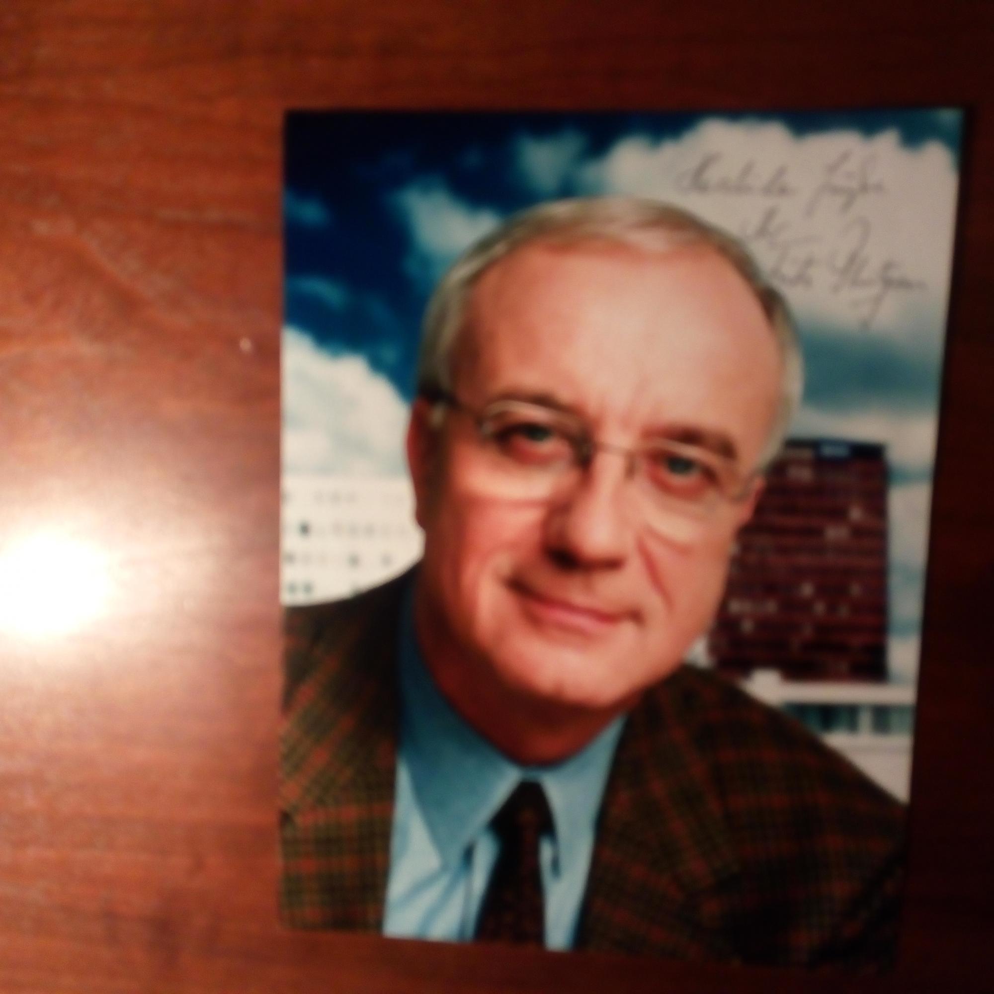 1938-2022, Journalist und Fernseh-Intendant - Farb-Pfo. (Hochglanz, ca. kl. 4°) mit e. Grüßen und U. Beiliegt das Anschreiben des Sammlers vom 11.1.1997.