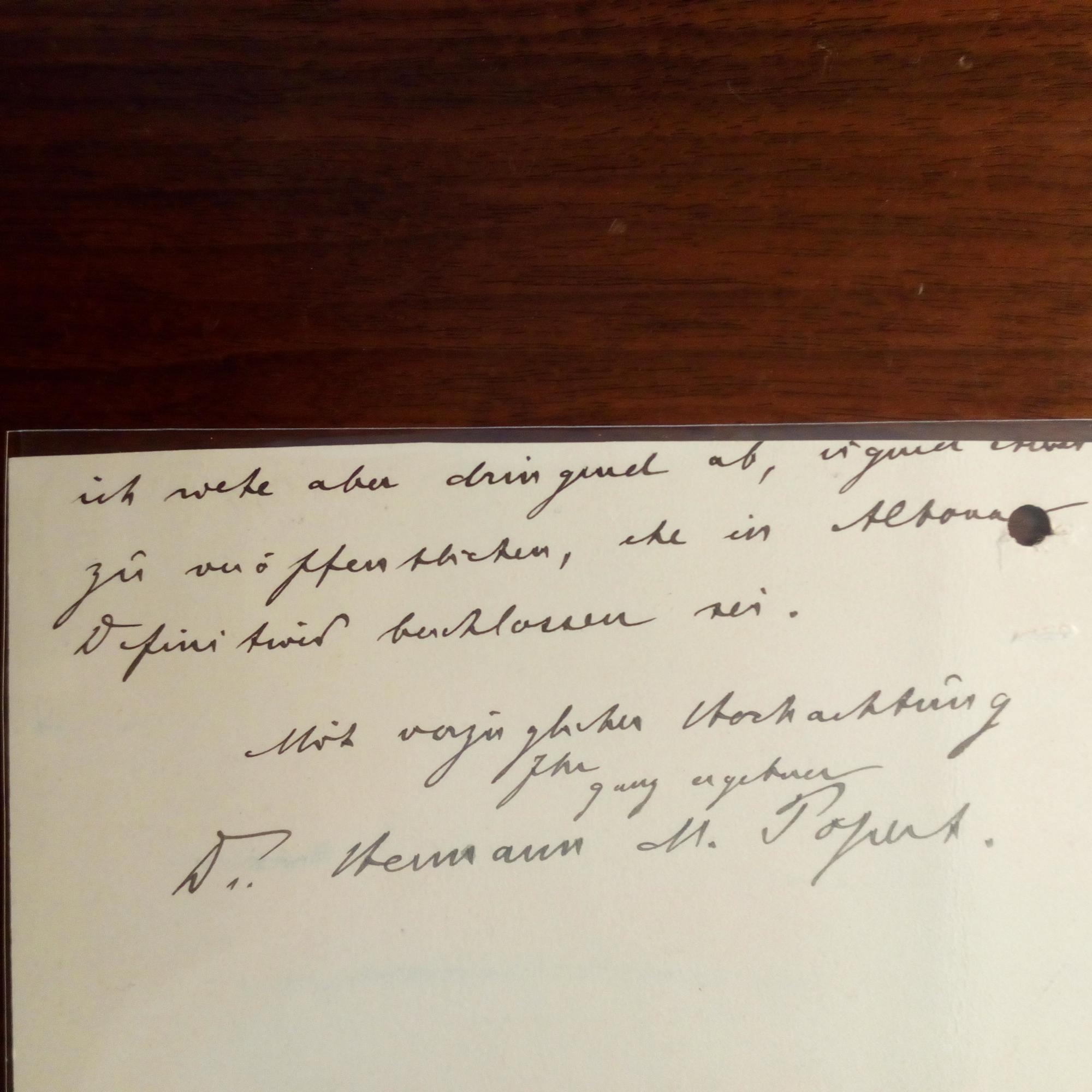 1871-1932, Richter und Schriftsteller - E. Br.karte, 2 S., beschn., m. U., (Hamburg) 7.7.1904, Br.kopf, gel. An Herrn Rissom: ...ist mir ... nicht recht verständlich ... rate dringend ab, irgend etwas zu veröffentlichen, ehe in Altona Definitives beschlossen sei...
