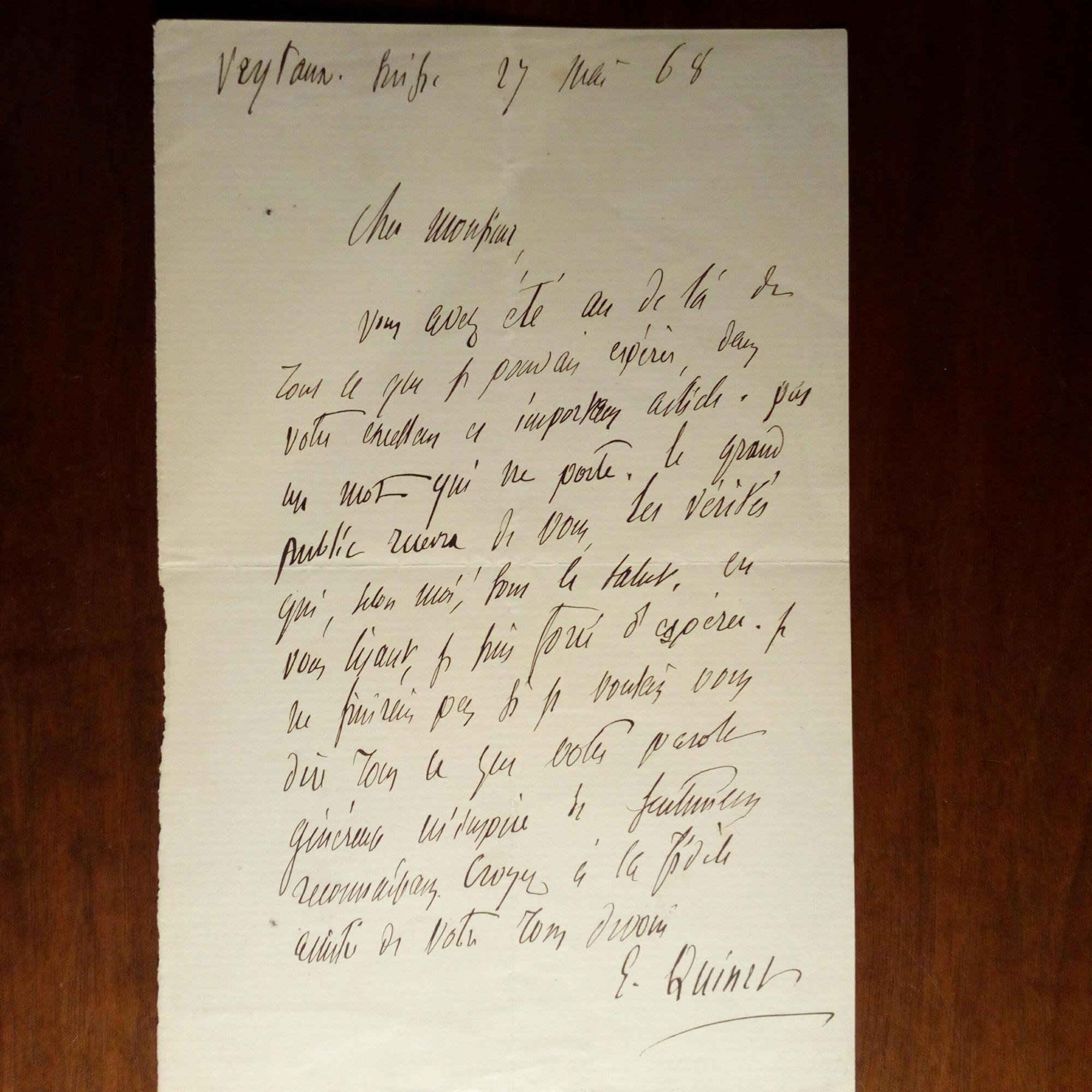 1803-75, frz. Schriftsteller und Historiker - 1. E. Brief mit U., Veytaux (am Genfer See) 27.5.1868, 1 S. 8°. Lobt außerordentlich einen Artikel des Adr. ...pas un mot qui ne parle... 2. E. Brief. mit U., Versailles 18.10.1871, 1 S. kl. 8°. An einen Vertrauten: ...Chaque jour la Situation devient plus grave. Je me fais un devoir de dire ma pensée...