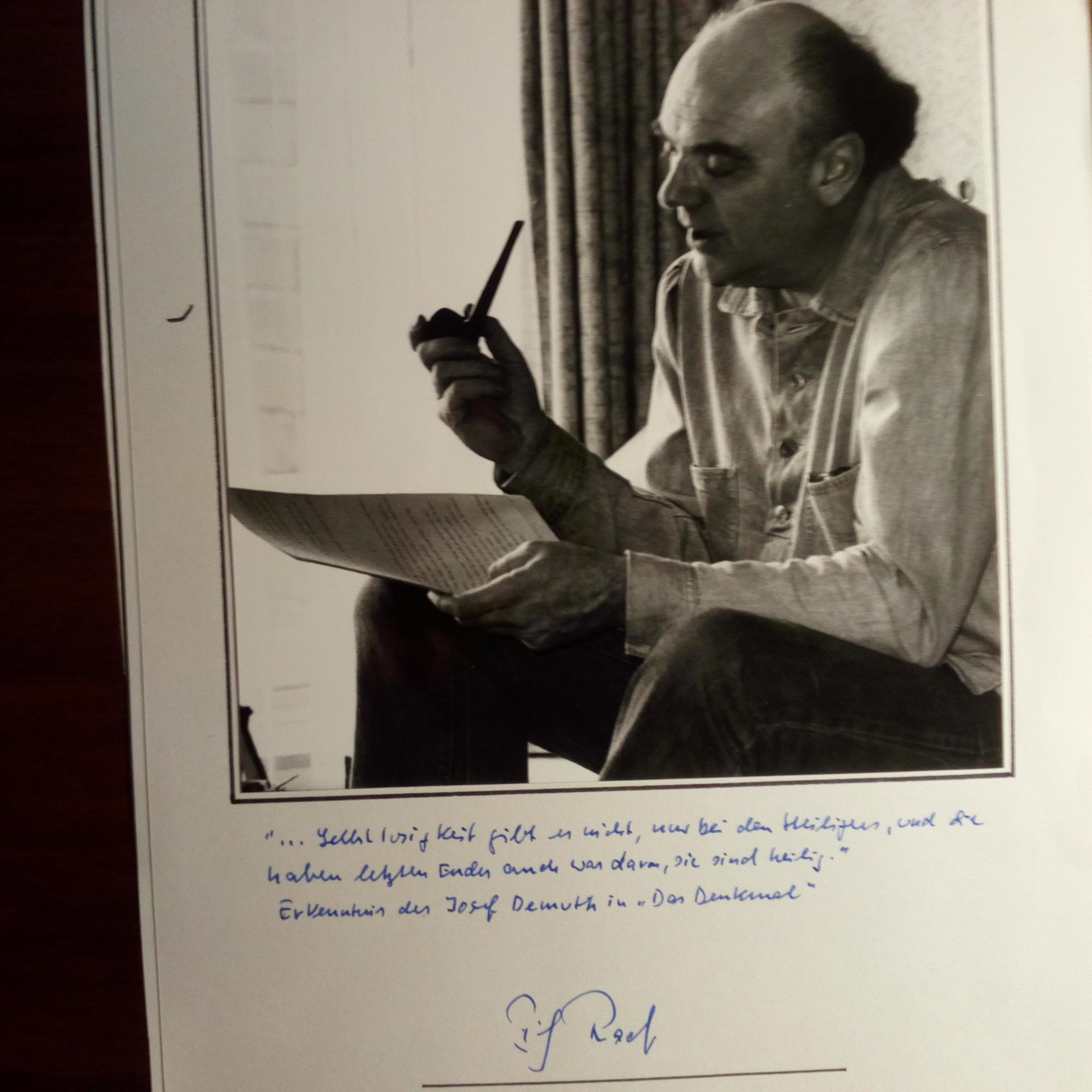 1925-2010, Schriftsteller und Hörfunk-Redakteur - E. Zitat (3 Z. "Erkenntnis des Joseph Demuth in "Das Denkmal"", 1979) u. U. unter gr., auf 4° mont. Hochglanz-Pfo., ger. Abrieb-Fleck.