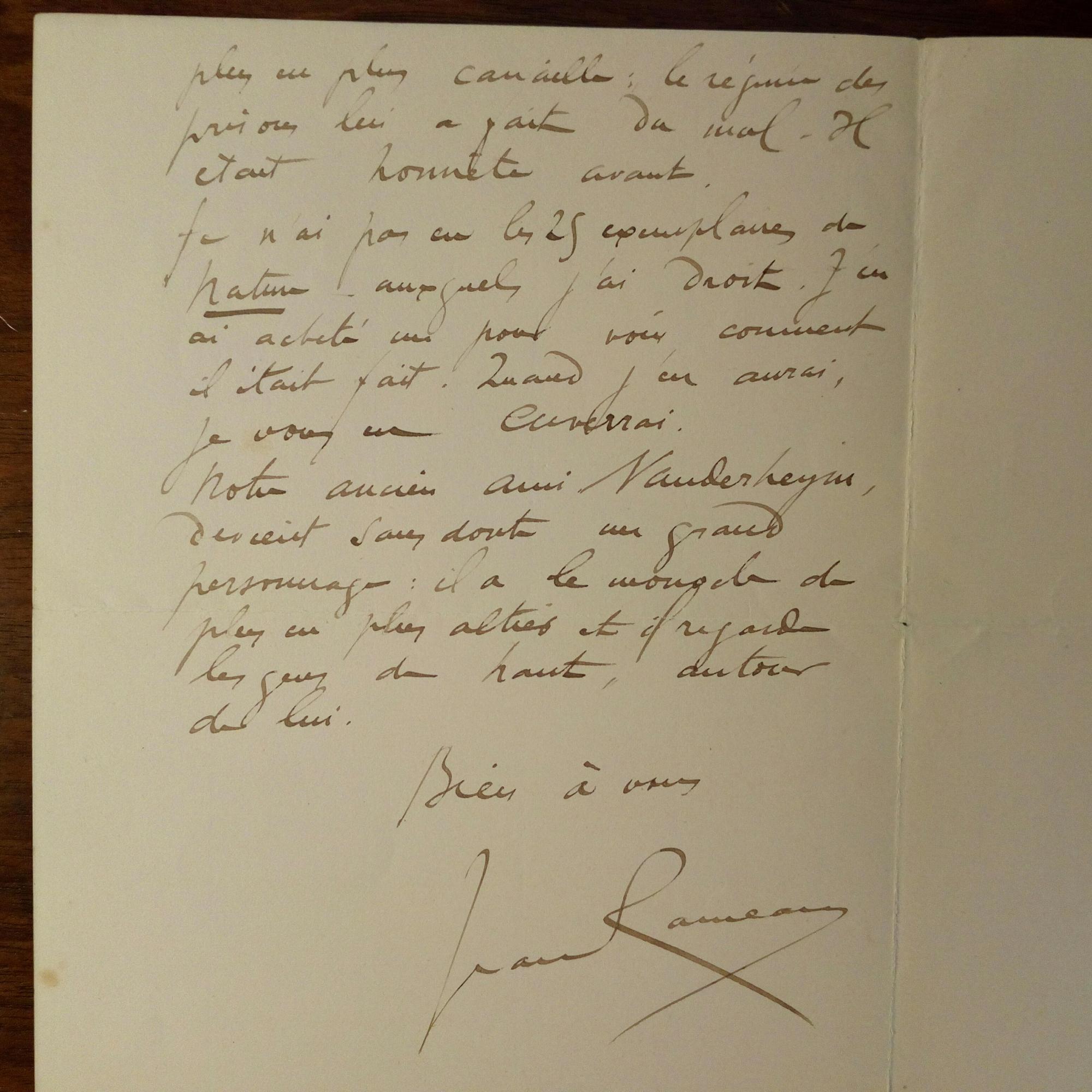 1858-1942, frz. Schriftsteller - E. Brief mit U., 2 S. 8°. An einen Freund mit Verlags-Interna (25 Exemplare von "Nature" u.a.) und über den Aufstieg von "Notre ancien ami Nauderheym".