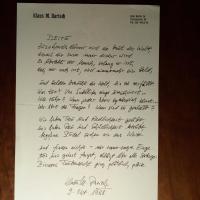 1936-2016, Lyriker - Privater 4°-Br.bogen mit e. Gedicht ("Pleite", 4 Str. à 4 und 3 lange Z.) und U., (Berlin) 9.10.1988.