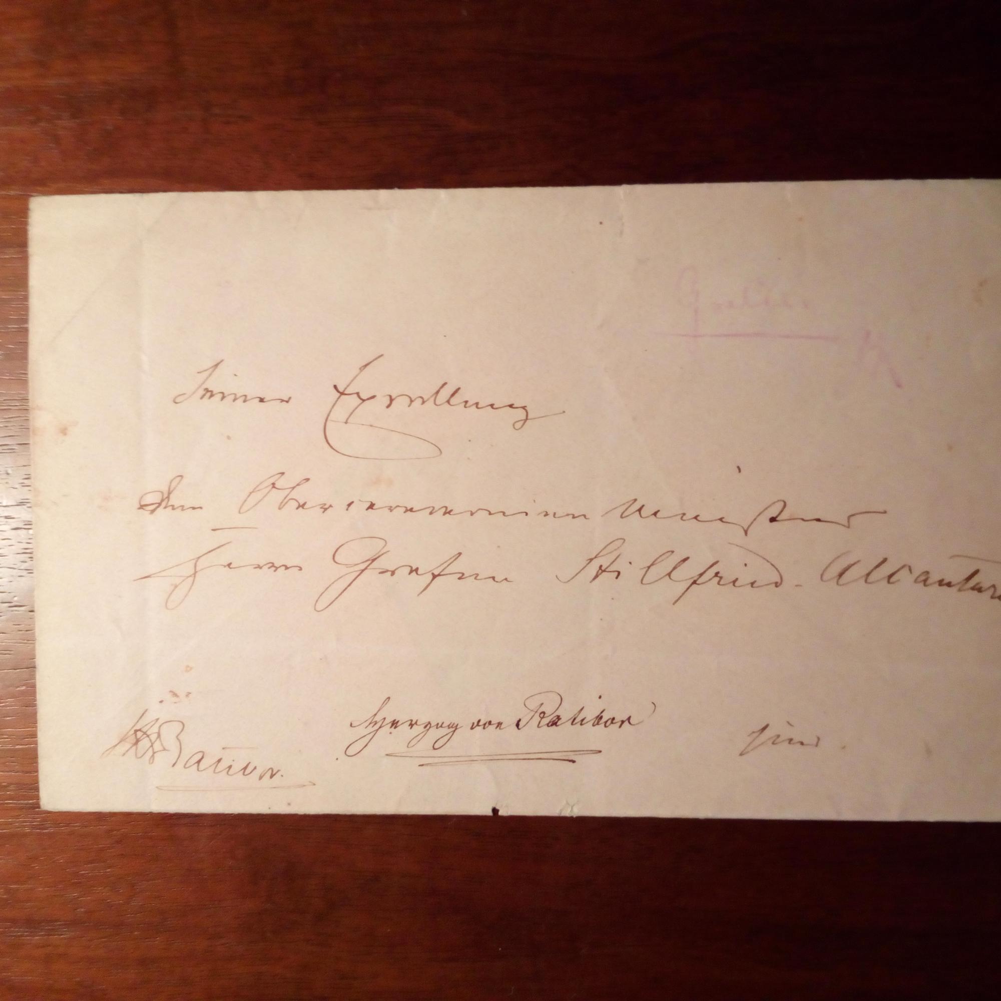 1818-93, Graf, Politiker - E. Umschlag mit U. An Graf Rudolf von Stillfried (1804-82), beschr., kl. Gebr.spuren.