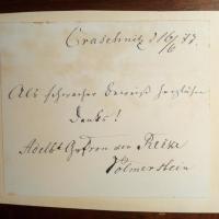 1791-1878, Pädagoge, Pionier der evangel. Sozialarbeit - Kl. Blatt m. e. Dankeszeilen, U., O. u. D. Graschnitz 16.6.1877, hinterlegt, gering fleckig.