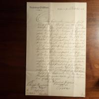 von 1889 bis 1907 Präsident des Kgl. Konsistoriums der Provinz Pommern - Amtl. Schreiben mit U., (Stettin) 18.2.1899, 1 S. folio, gedr. Br.kopf des Konsistoriums, Aktennr., Vermerke. Erinnert den Kirchenrat von Klützkow Albert Johann Gottfried Petzsch in Schivelbein (heute Swidwin) an die Fälligkeit der "Kanitz'schen Hypothekensache". Beiliegt amtl. Schreiben des Reg.-Präsidiums in Cöslin (1888) an den Pfarrer von Schivelbein Ludwig Wetzel: Muss das Gesuch zur Entbindung vom Vorstand des St. Spiritus-Hospitals (Greifswald) ablehnen.