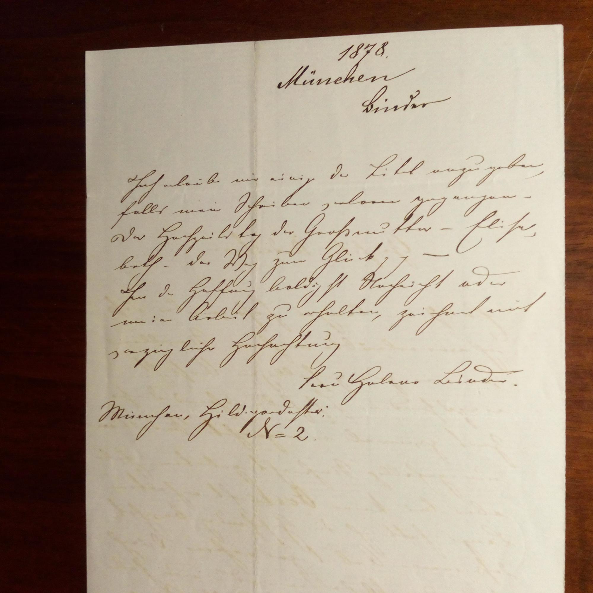 1855.1915, Schriftstellerin - E. Br. m. U., München (1878, Eing.vermerk), 1 ½ S. 8°. Bittet eine Redaktion, ihre Novellen nach einem "langen Jahr" endlich wieder zurückzuschicken (u.a. "Der Hochzeitstag der Großmutter", "Elisabeth" und "Der Weg zum Glück").