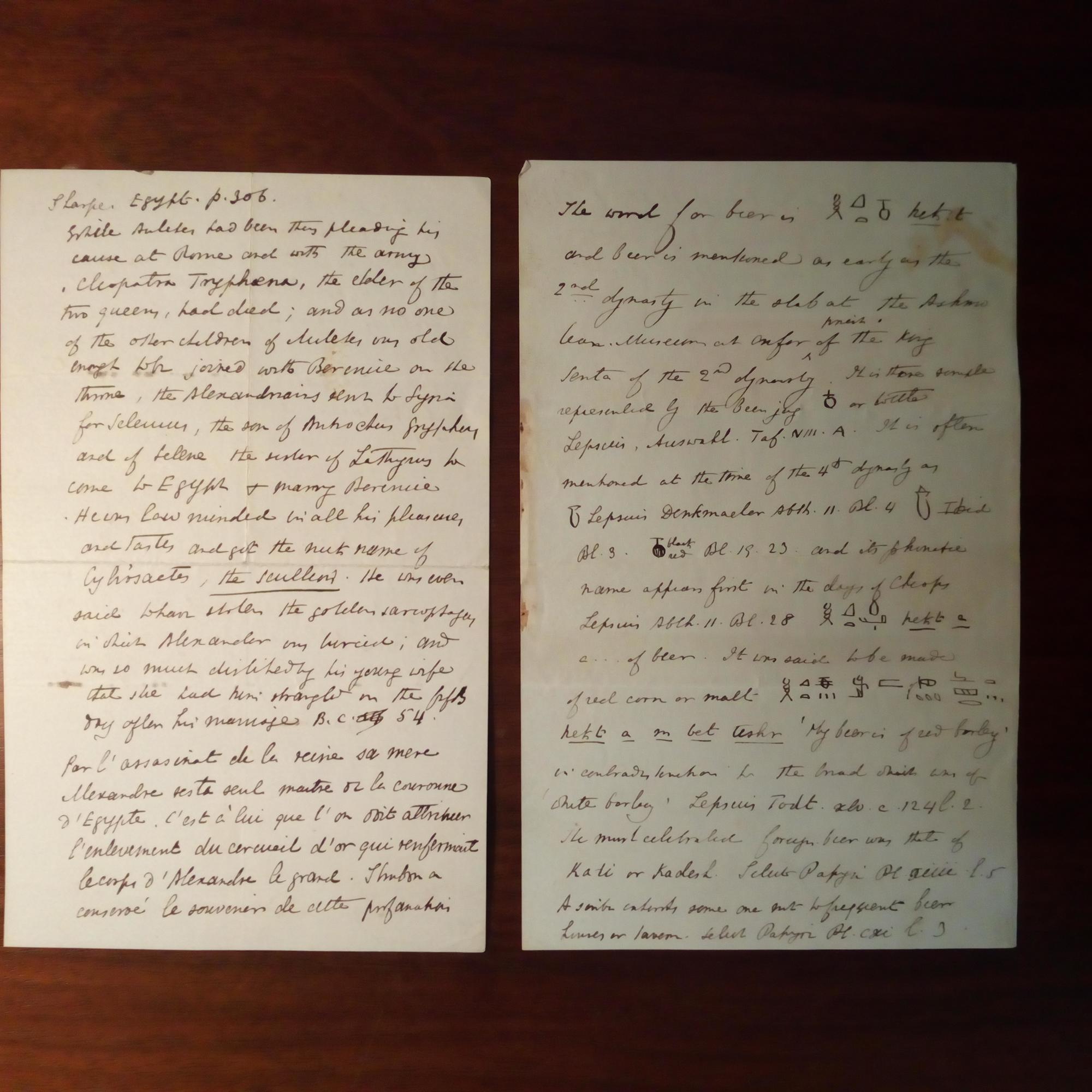 1813-85, brit. Archäologe, Dir. des British Museum - 3 ½ S. eines e. Manuskr. (eine frz.), mit Hieroglyphen-Zitaten. Mit e. kurzem Begl.br. mit U., an Johann Georg Pfister (Numismatiker, Altertumswiss., 1799-1883, von ihm ist Fragment mit U. aufgeklebt), London 14.6.1861, darauf 1 ½ e. Seiten mit Übers. eines chines. Manuskripts. Alles 8°.