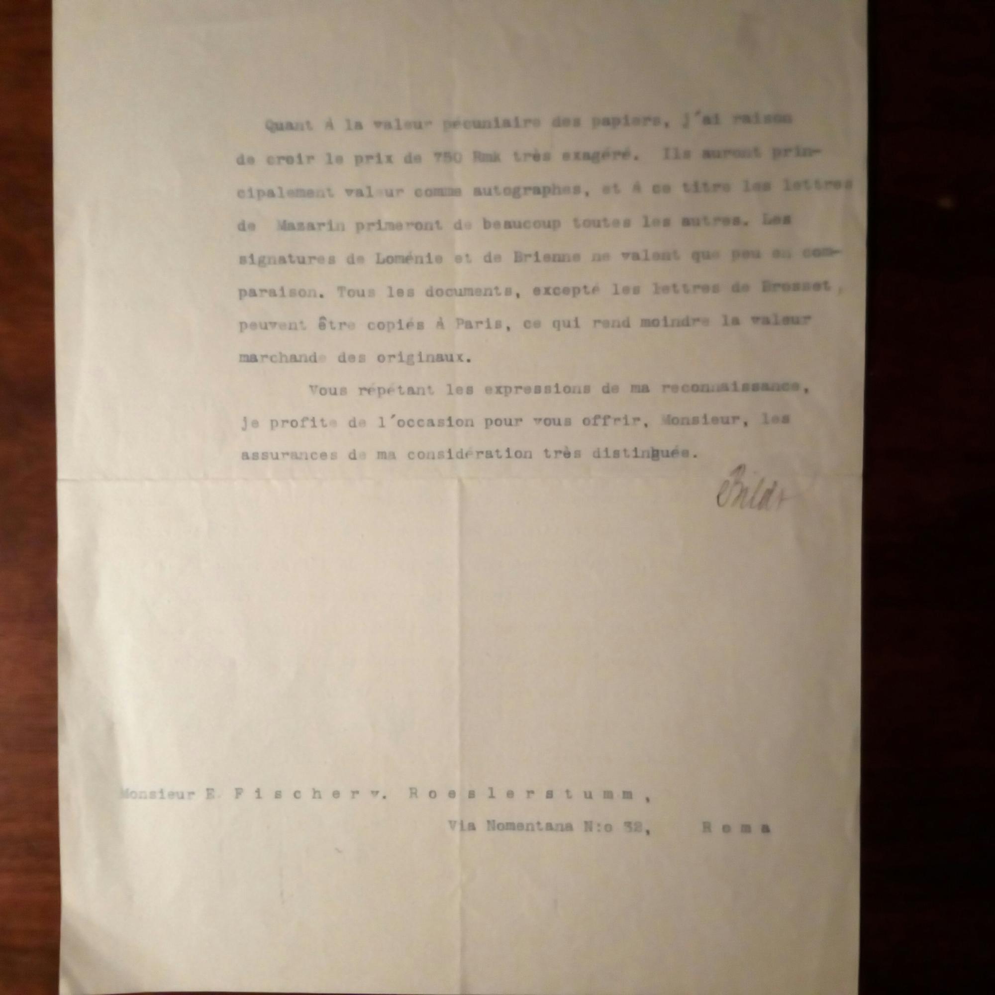 1850-1931, schwed. Diplomat und Leiter der schwed. Akademie der Wissenschaften - Brief mit U., Rom 13.5.1901, 1 ½ S. 4°, gedr. Emblem am Kopf. An den österr. Journalisten und Autographen-Sammler Eduard Fischer von Röslerstamm (1848-1915): Dankt für den Hinweis auf ein Autographen-Konvolut zur schwed. Geschichte, das in Frankfurt angeboten werde und Details zu Briefen von Mazarin, Loménie und Brienne. ...Tous les documents, excepté les lettres de Brosset, peuvent être copies à Paris...