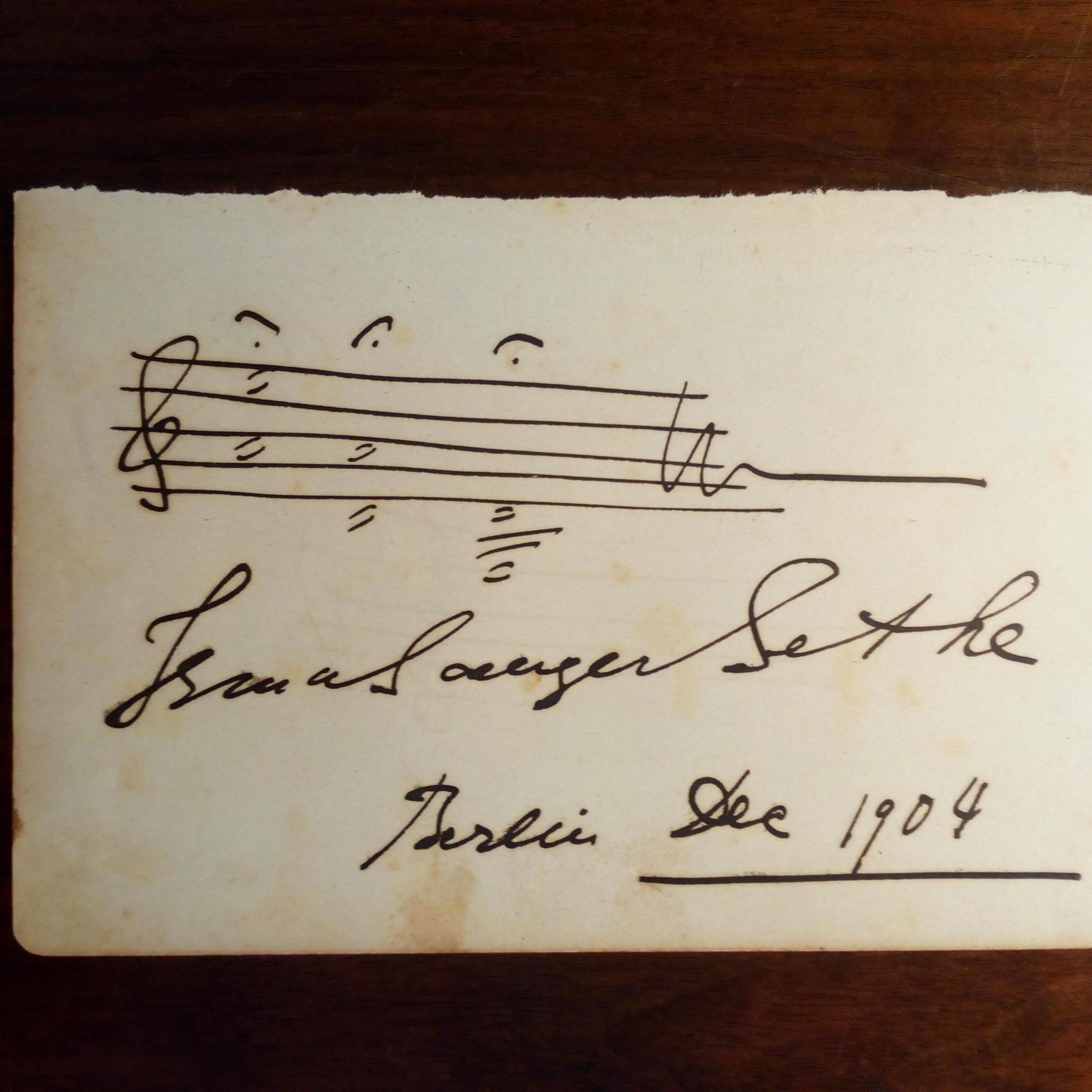 1876-1958, Violonistin - 8°quer-Blatt m. e. Notenz. (Auftakt), U., O. u. D. Berlin Dez. 1904. Rückseite ähnl. von and. Hand. Etw. altersfleckig.