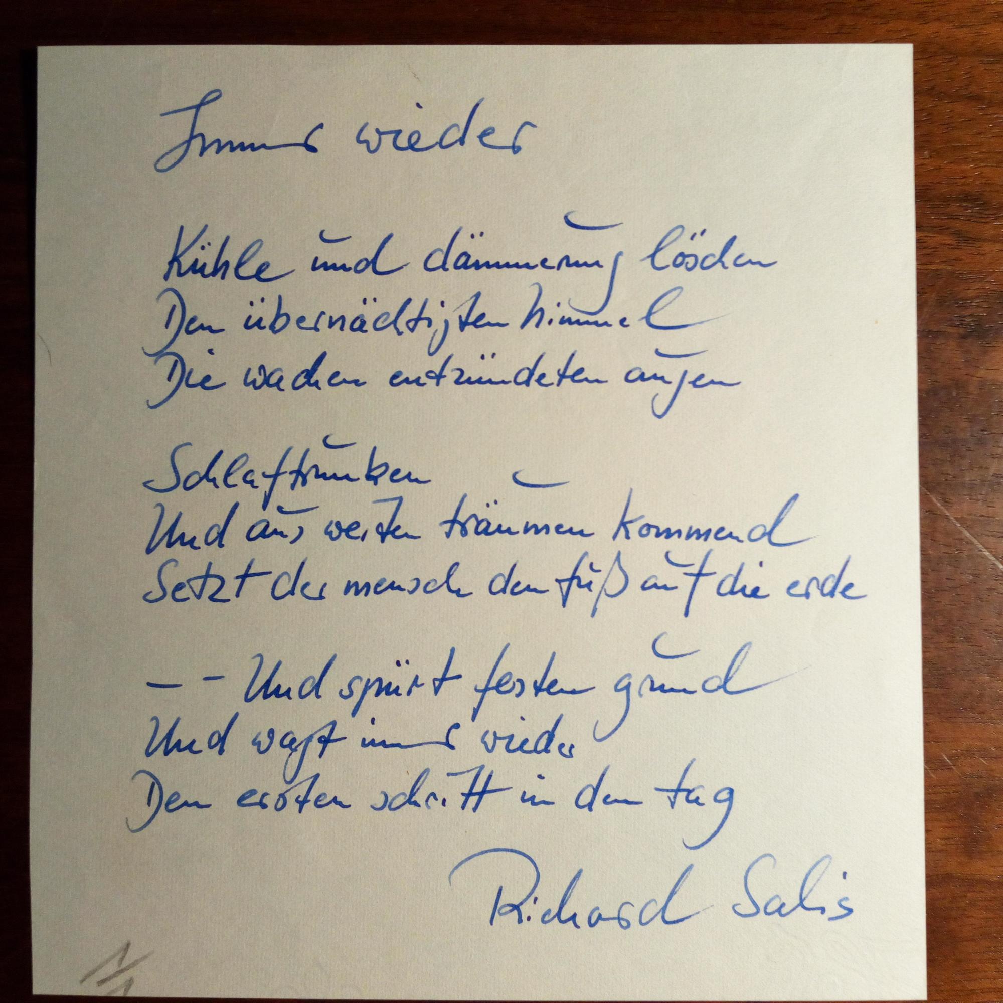 1931-88, Schriftsteller - kl. 8°-Blatt mit e. Gedicht (3 Str. à 3 Z.) und U. "Immer wieder...Den ersten schritt in den tag").