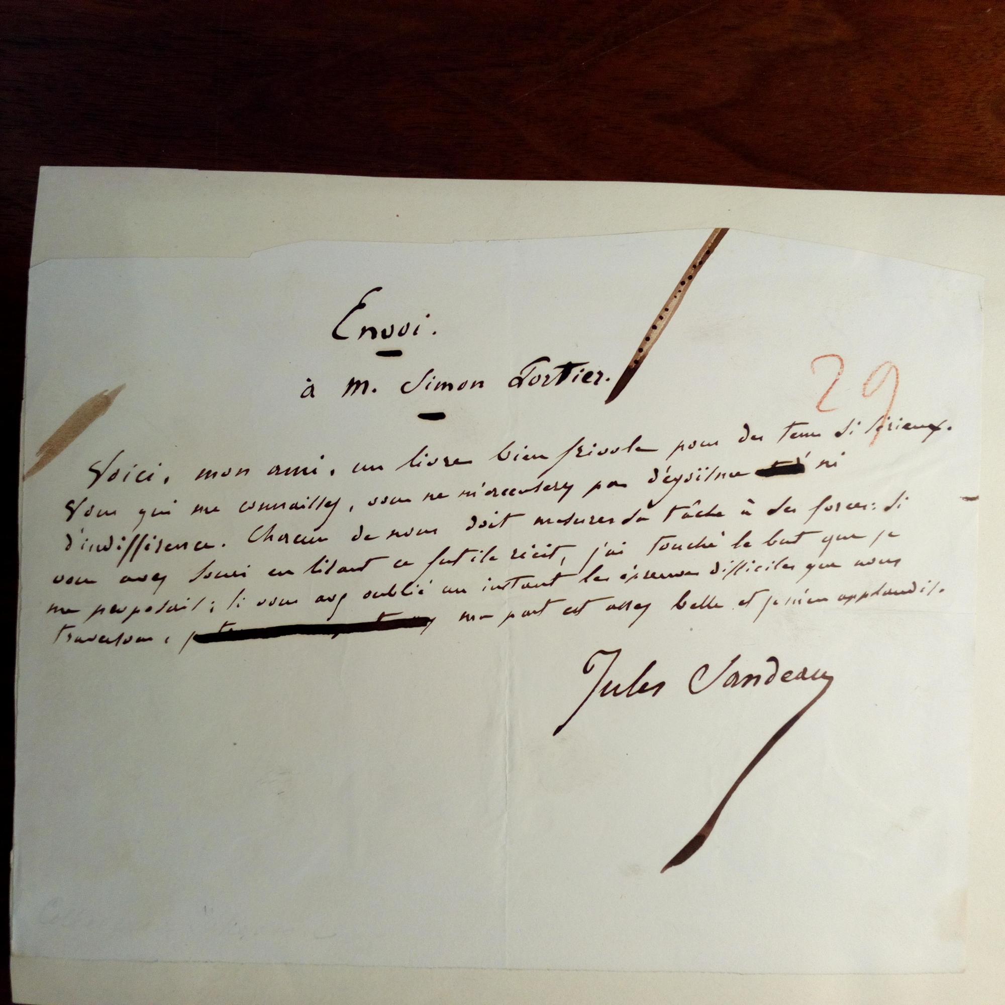 1811-83, frz. Schriftsteller - E. Br. m. U. "Envoi à M. Simon Portier", ca. kl.4°, quer, beschn., mont., Aktennr. ...Voici, mon ami, un livre bien frivole pour des tems si sérieux...