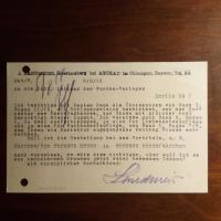 1881-1941, Schriftst., Übersetzer (u.a. Hamsun) - Postal. Postkarte (Typoskript) m. U. (Kopierstift), Aschau (Chiemsee) 3.8.1918, sehr kl. Schrift, Bearb.notiz, gel. An den Furche-Verlag in Berlin: ...vermisse noch Band I., Bogen 7/8 ... den Beitrag Flakes enthaltend... u.a.