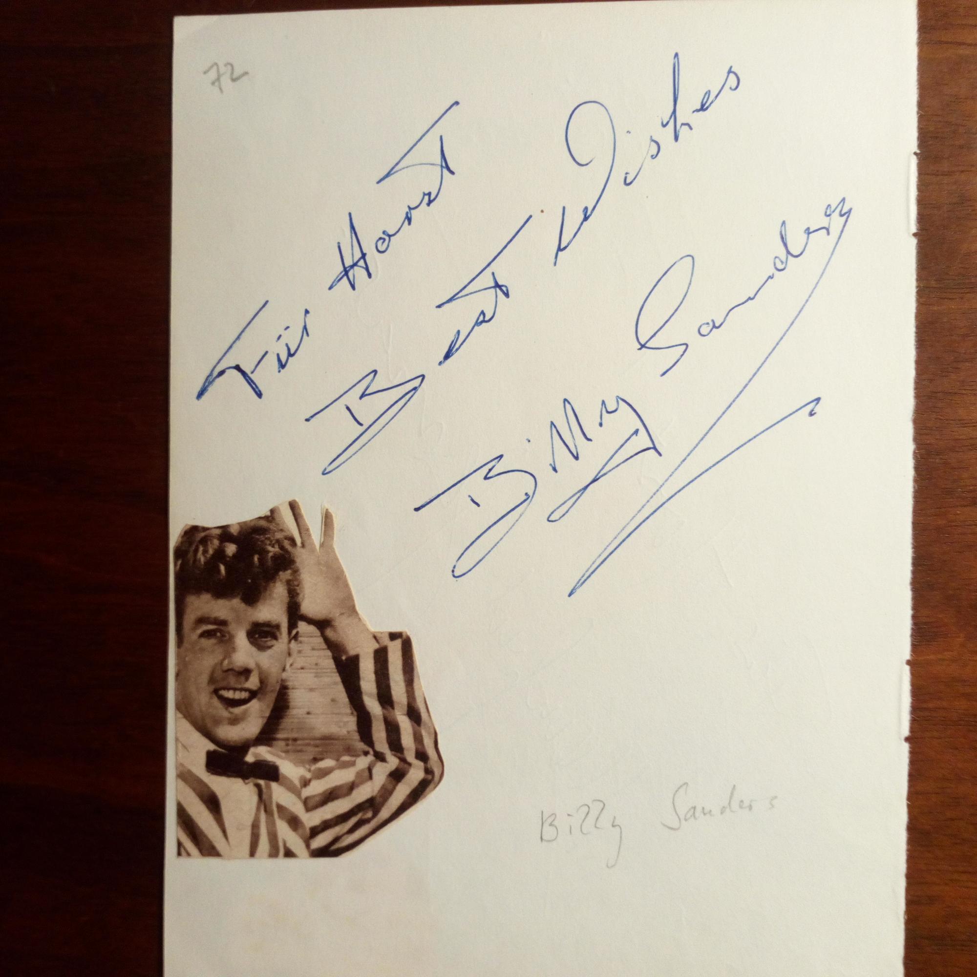 1934-2001, brit. Schlagersänger in Dt. - kl.8°-Blatt m. kl. mont. Druck-Pfo., Widm. u. U. Rückseite ebenso von dem Leicht-athleten Manfred Germar (geb. 1935).